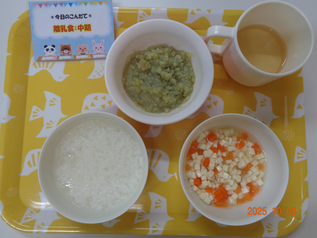・5倍がゆ ・さつまいもの甘煮 ・豆腐のつぶし煮