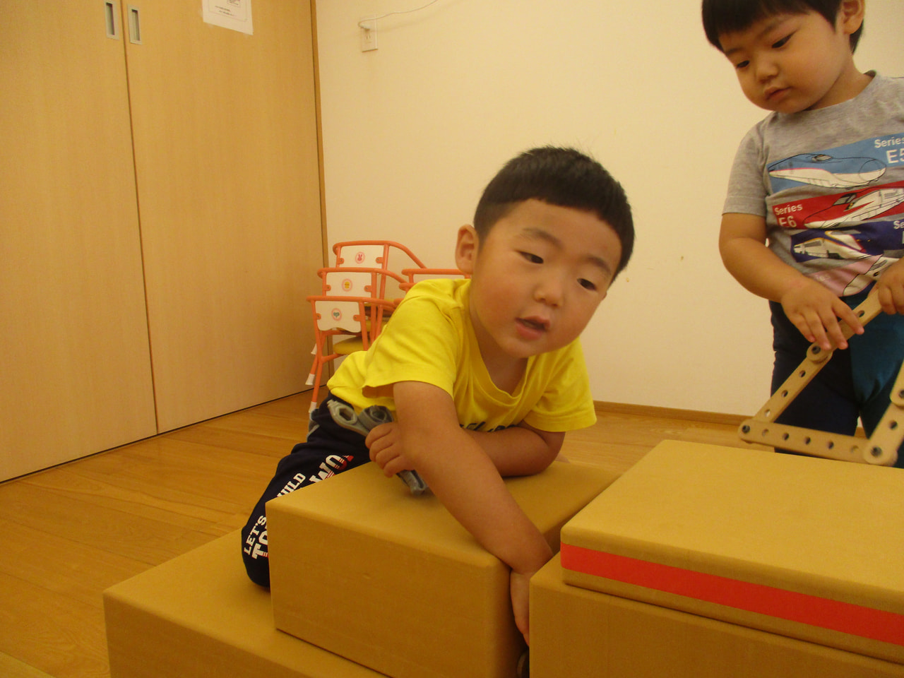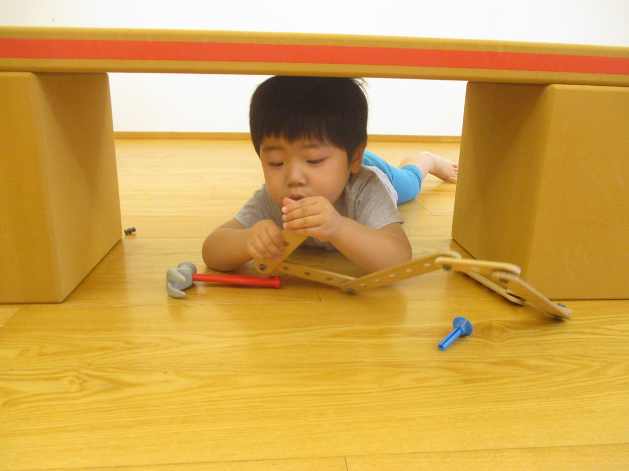 アスレチックブロックで体を使った遊びを楽しみ、