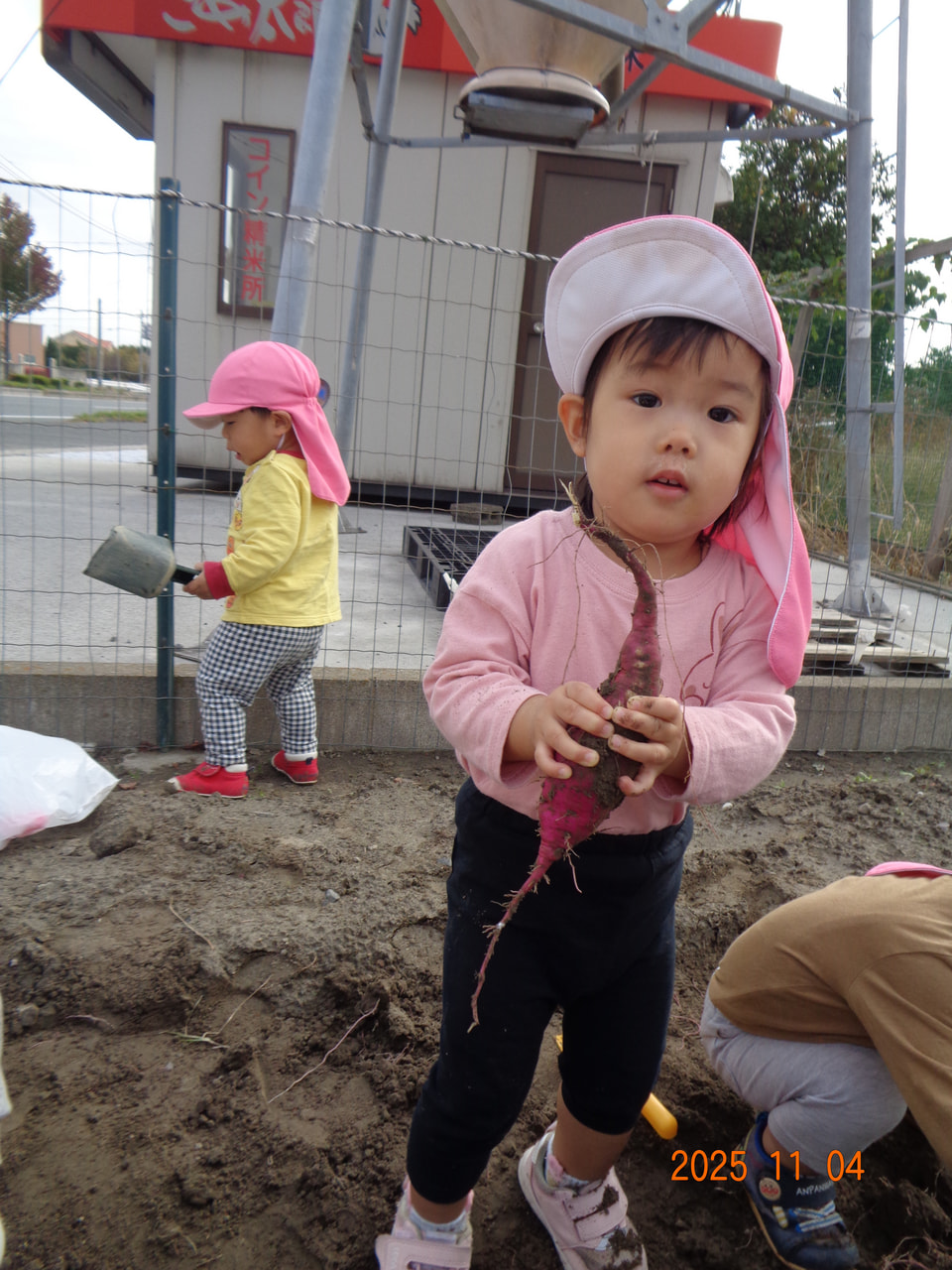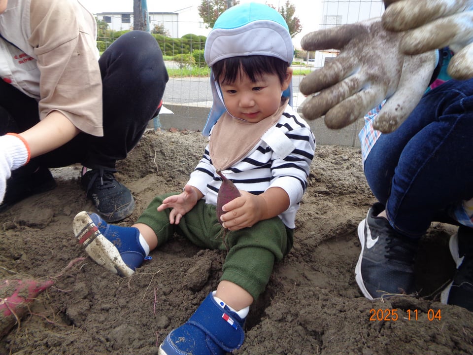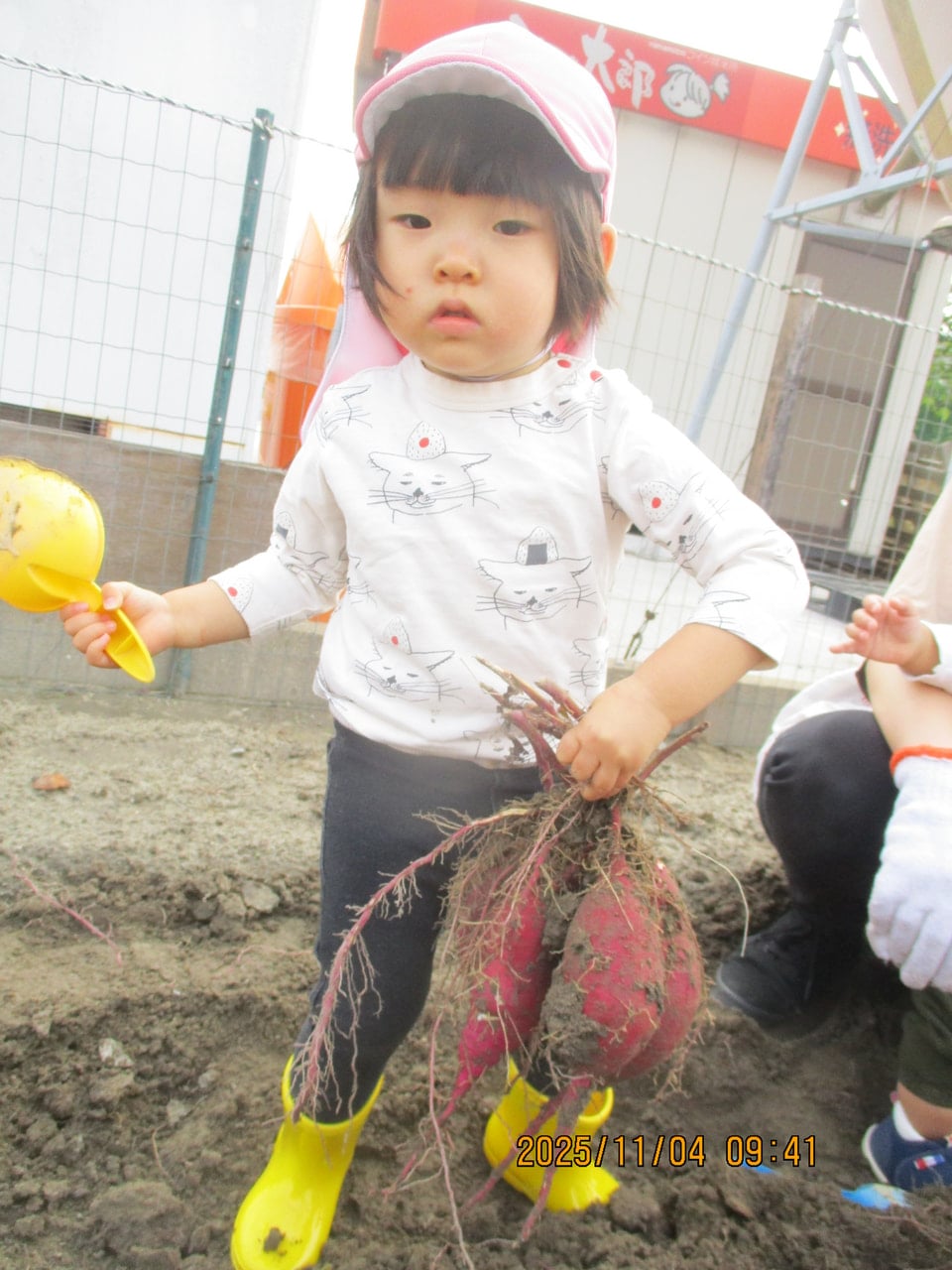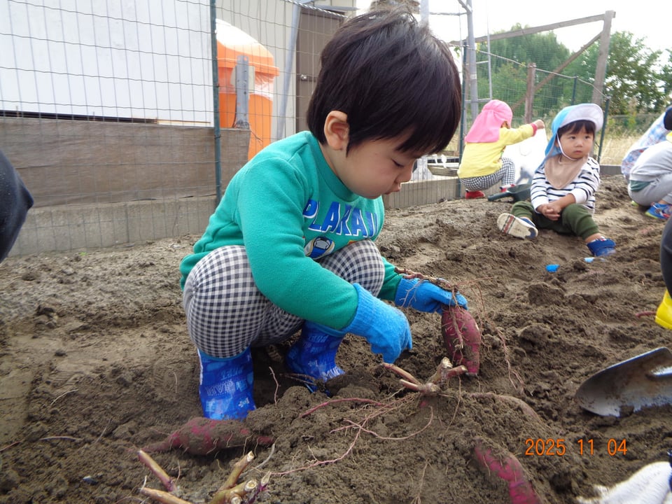 近隣の方や保育士と一緒に協力しながら、大きなお芋をGET🍠\(^o^)/