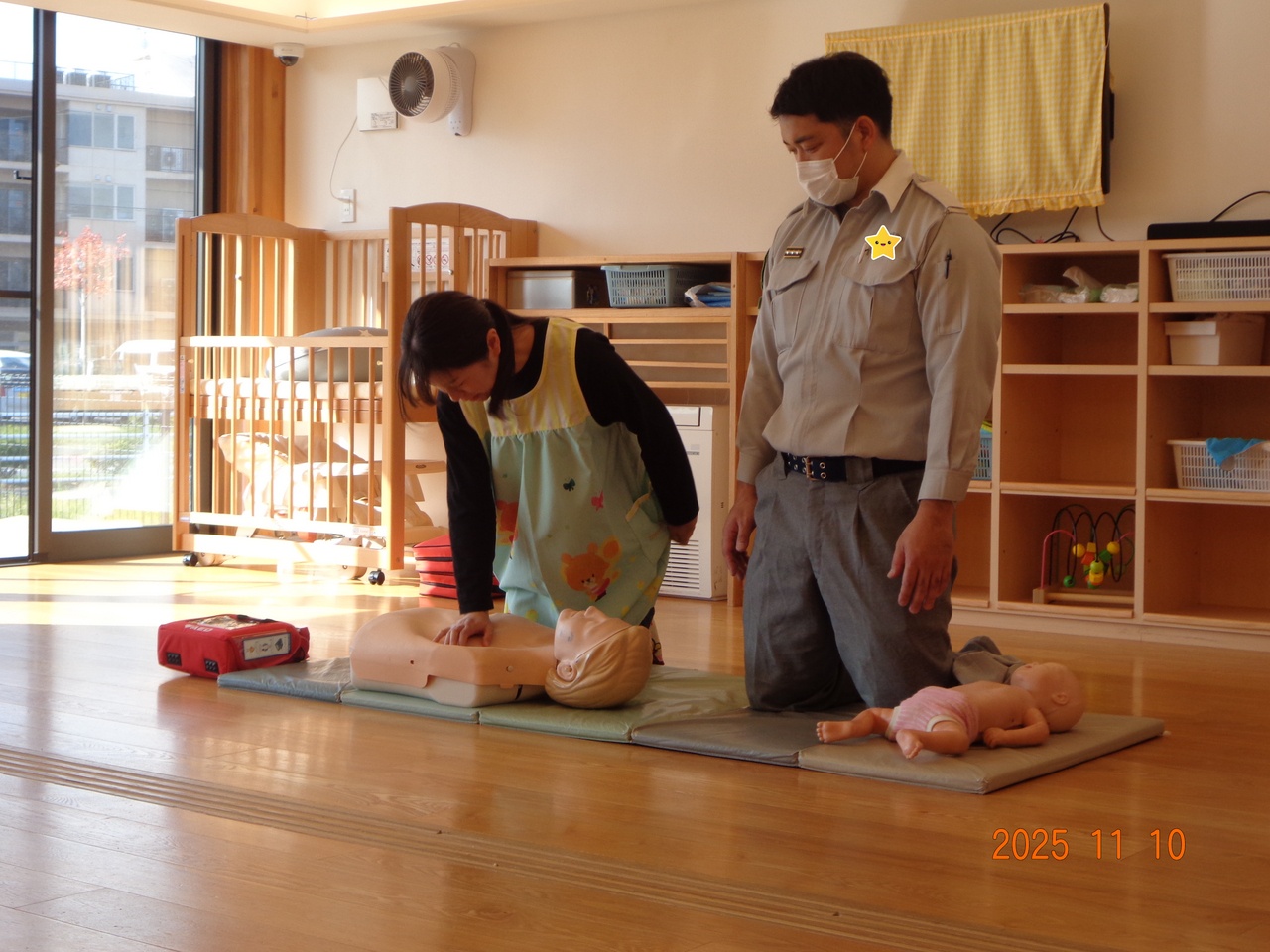 職員の救急救命講習に子どもたちも見学させてもらい・・・👀