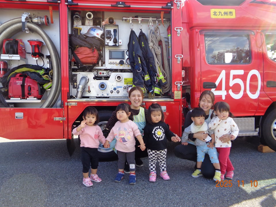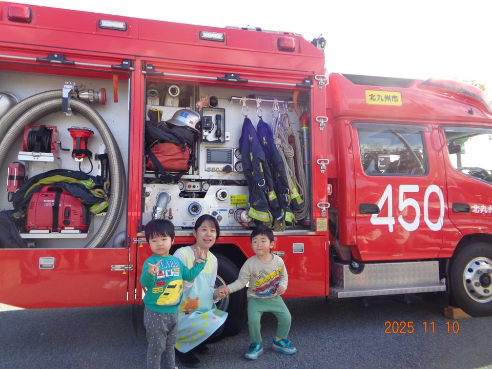 講習を受けた後はお待ちかねの消防車見学🚒✨