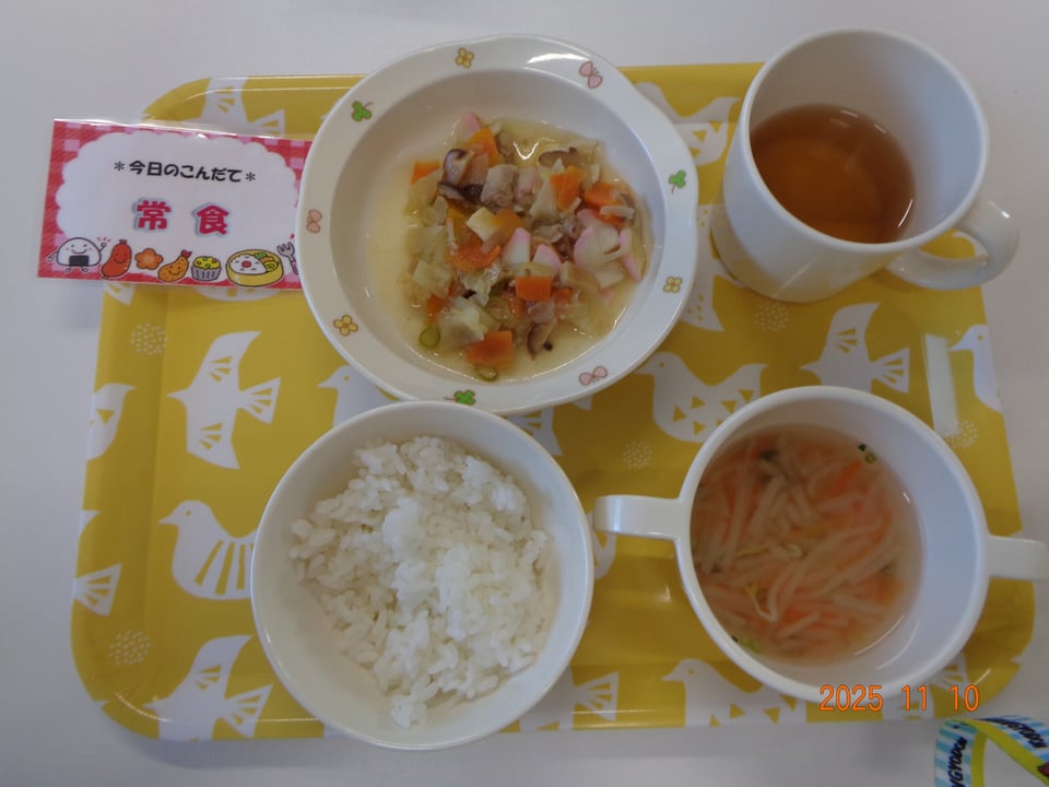 ・ごはん ・八宝菜 ・もやしとにんじんの中華スープ