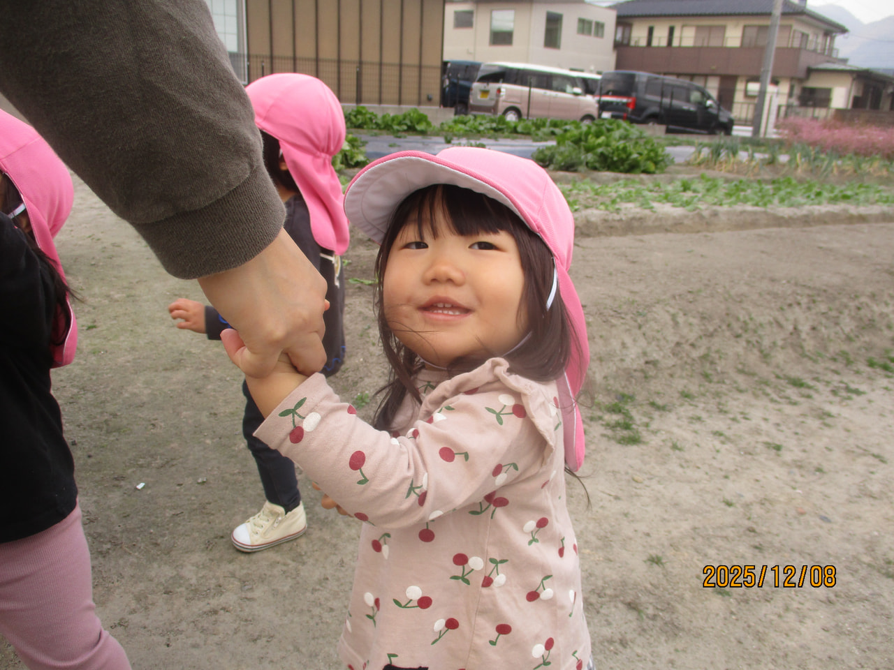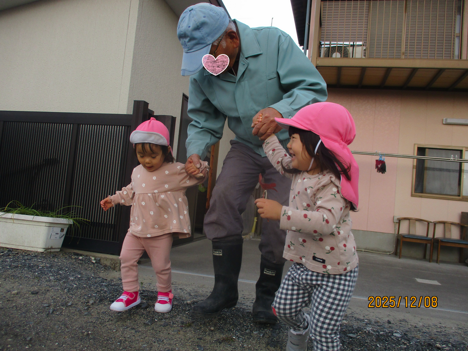 近隣の方が大好きな子どもたちは、手を繋いで一緒にお散歩💕