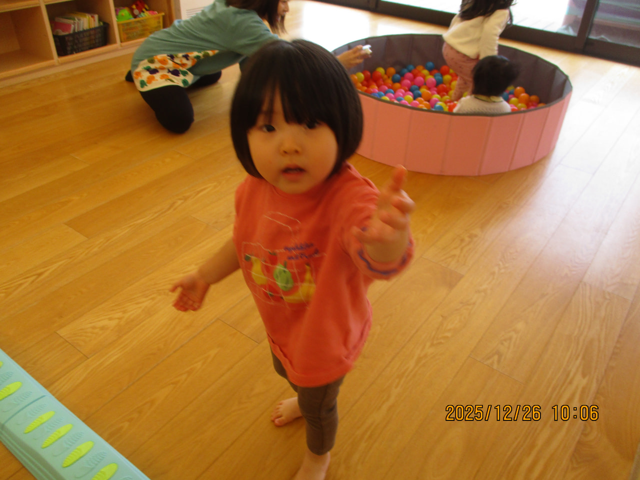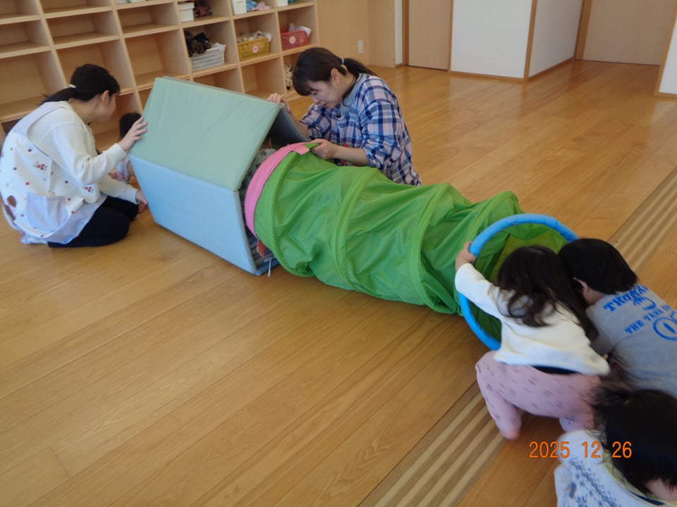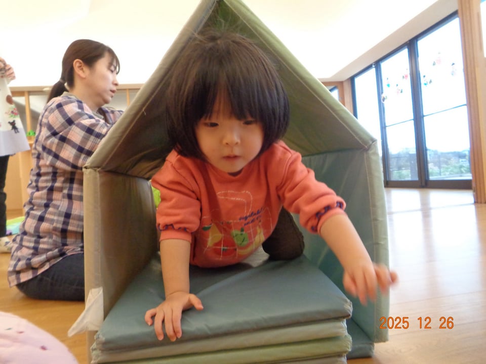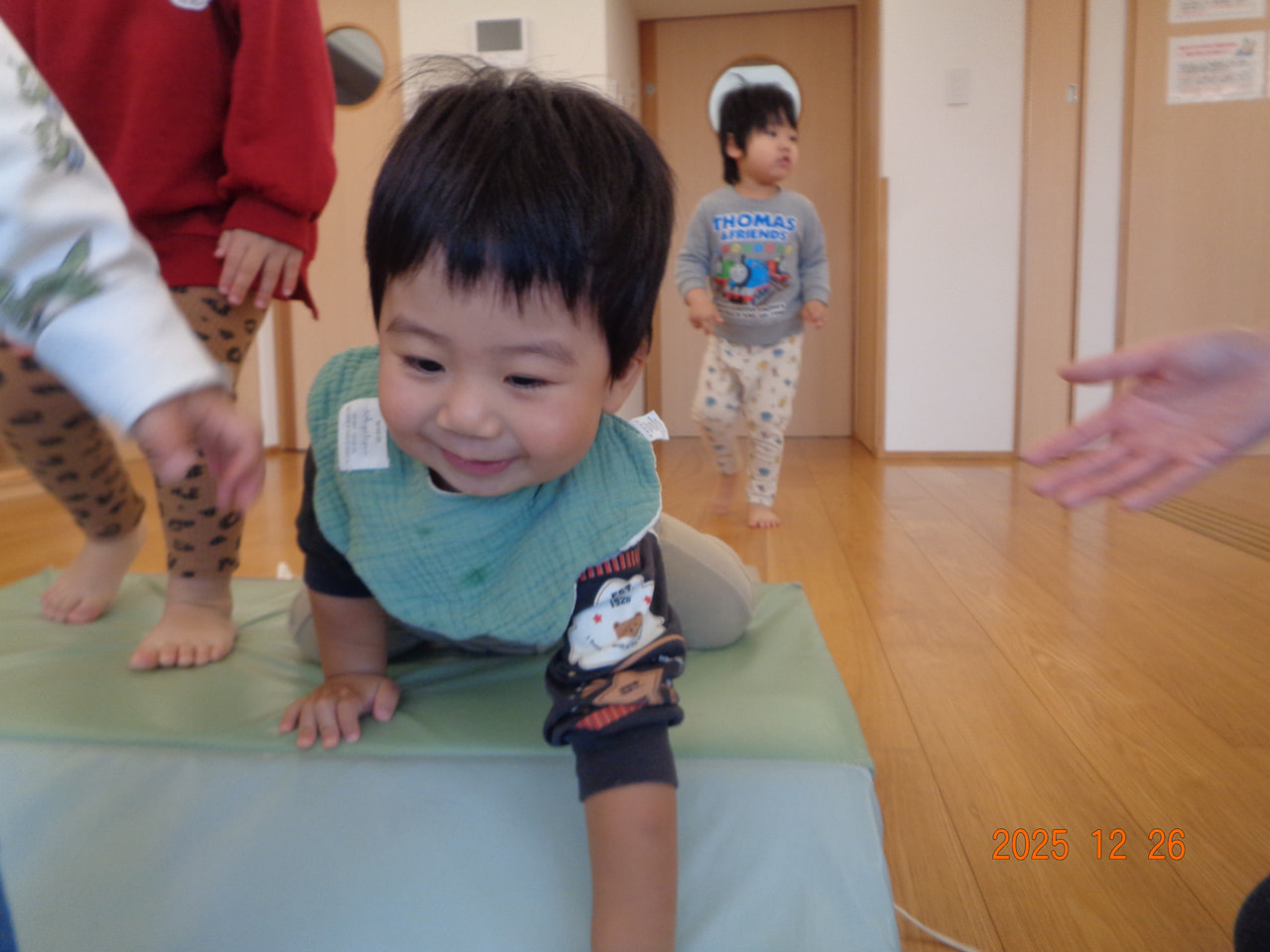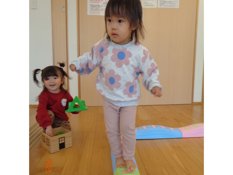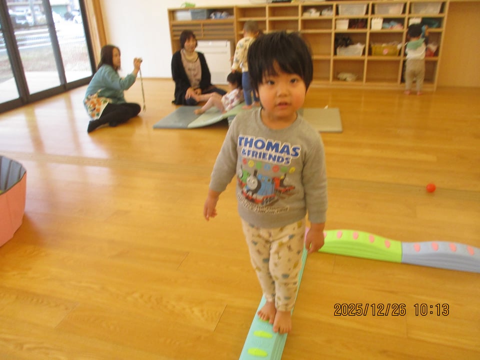 広いお部屋で全身を使った遊びを通して、体を動かす