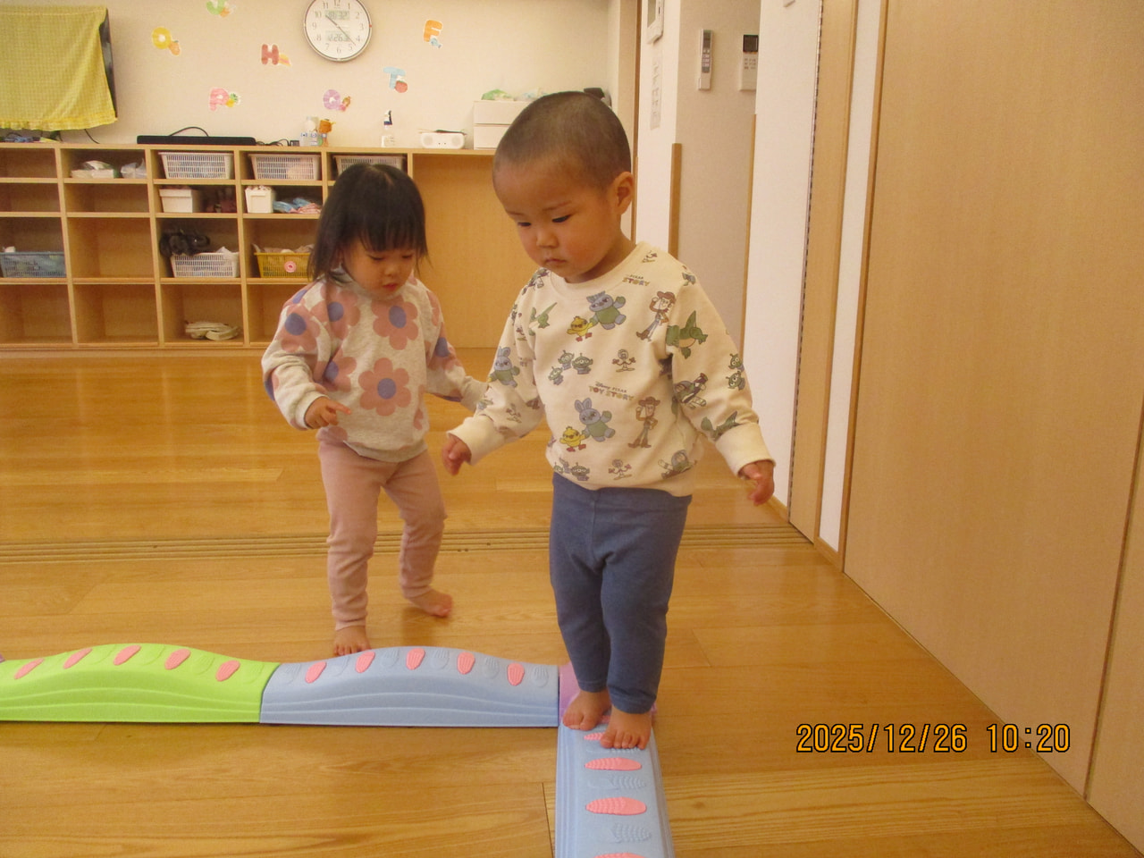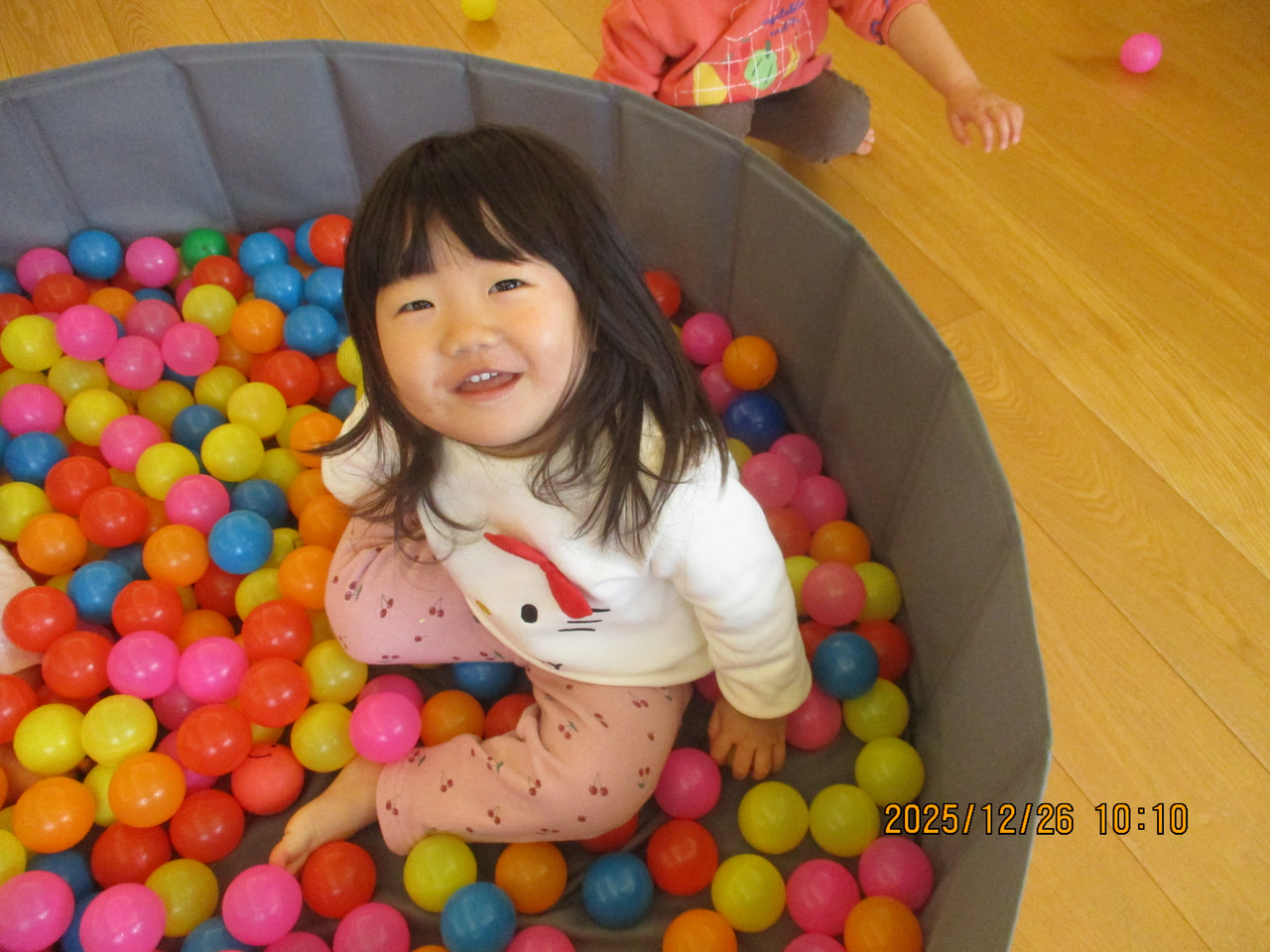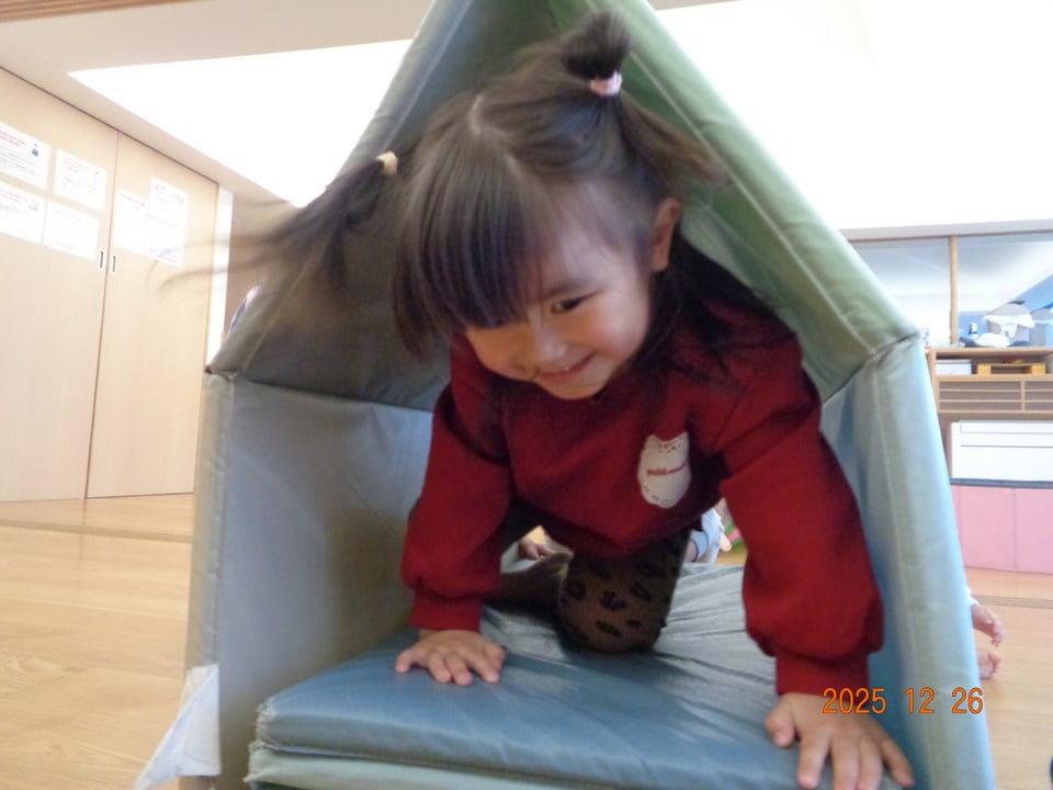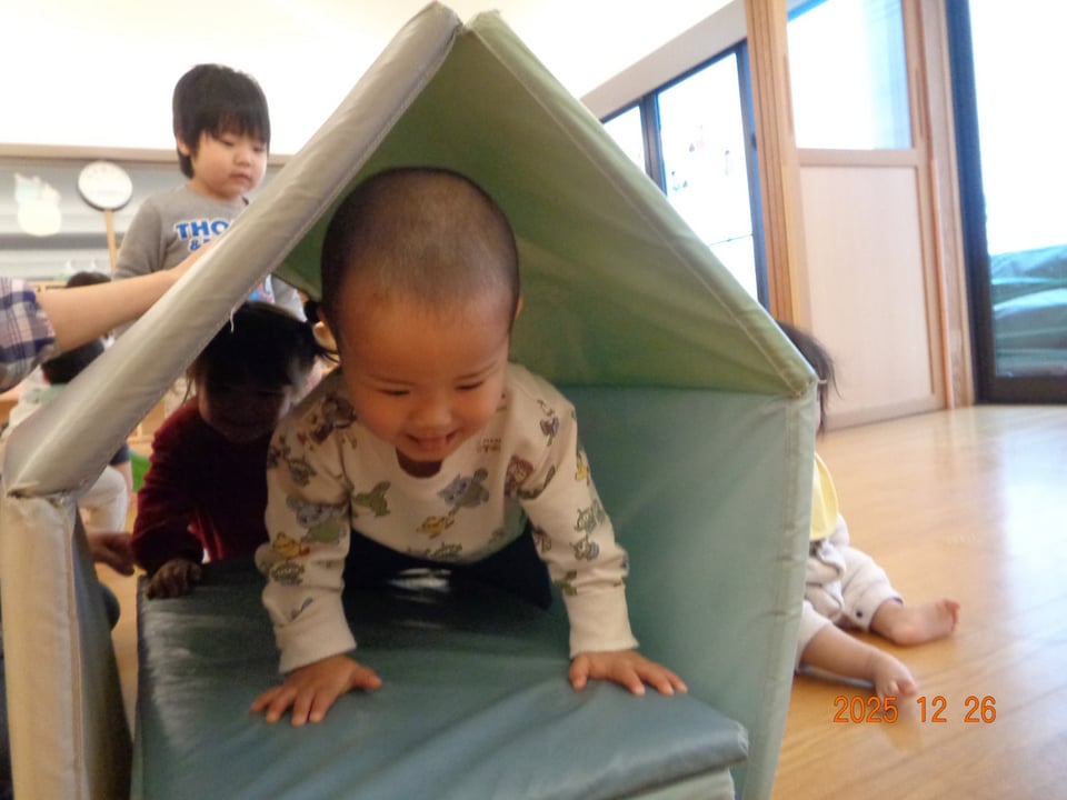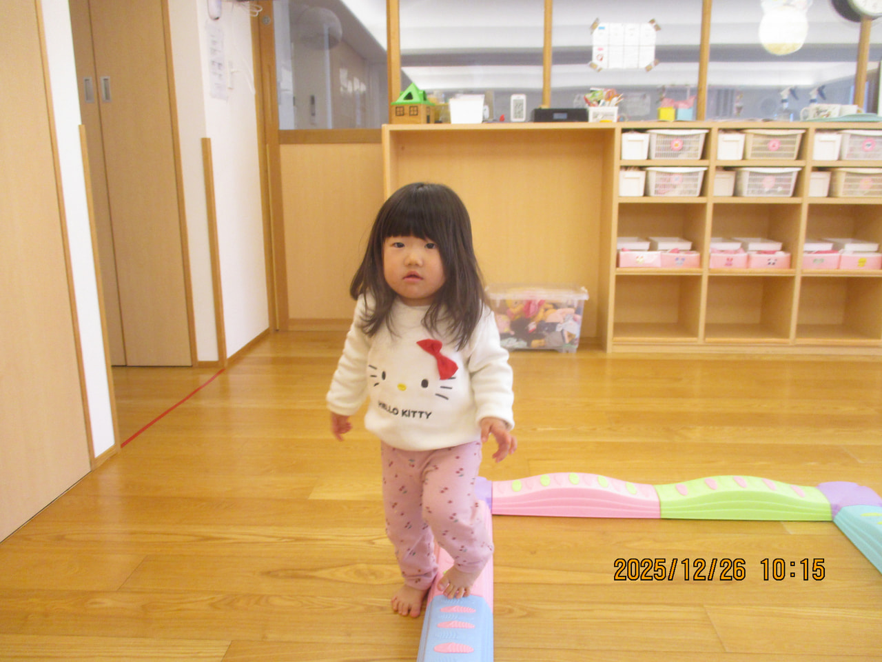 広いお部屋で全身を使った遊びを通して、体を動かす