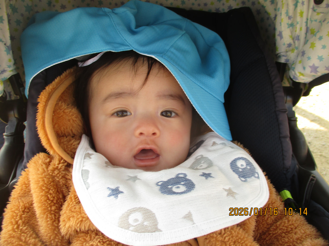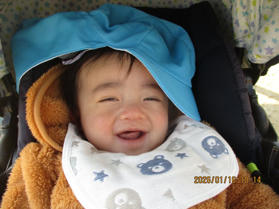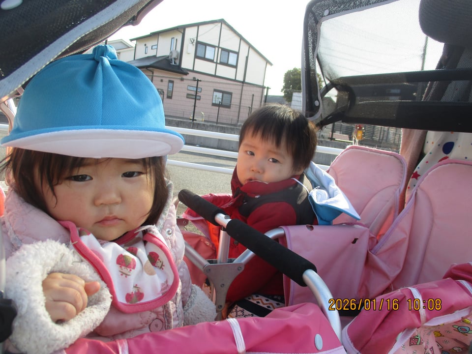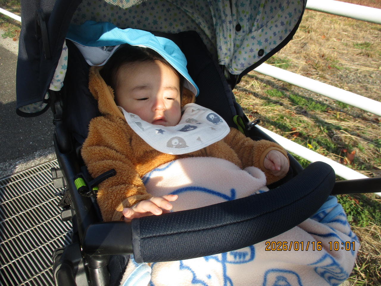 ベビーカーに乗って公園内をゆったりとお散歩😊