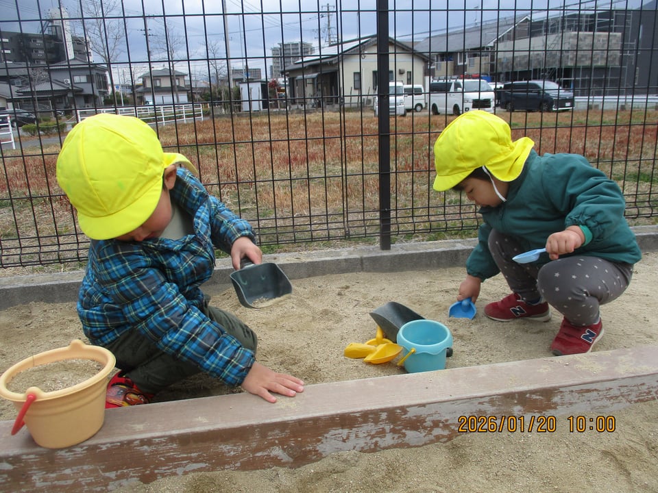 そらぐみのお友だちは土を掘って、運んで、工事ごっこをしていました(*^^*)