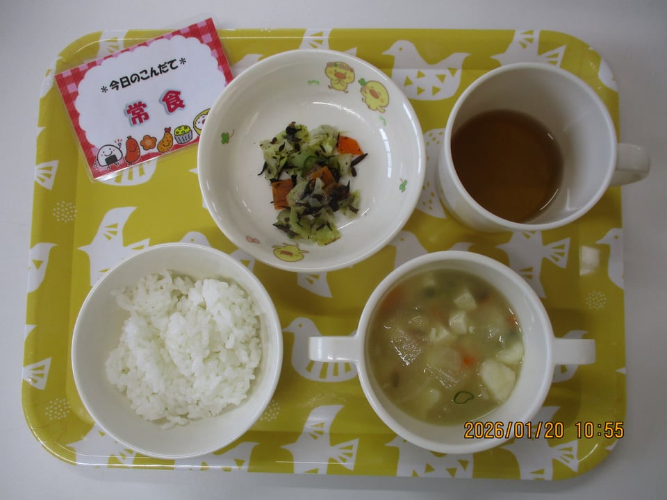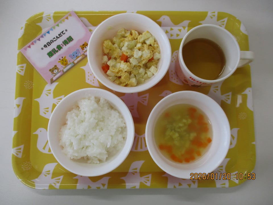 ・軟飯 ・野菜の卵とじ ・味噌汁