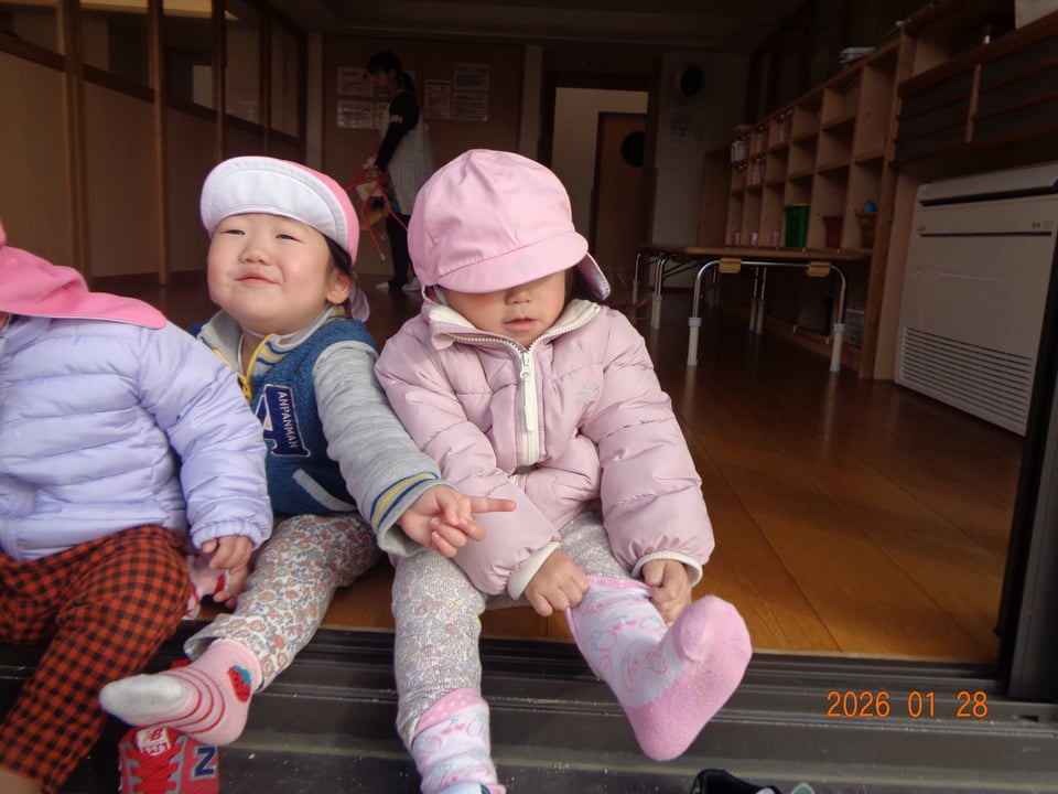 ほしぐみさんとそらぐみさんは自分で靴下や靴を履こうと頑張っています( •̀ ω •́ )✧