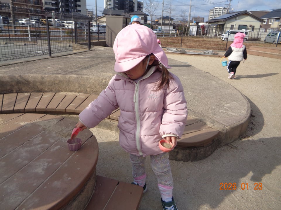 風が少し冷たいですが、戸外での活動も楽しんでいます\(^o^)/