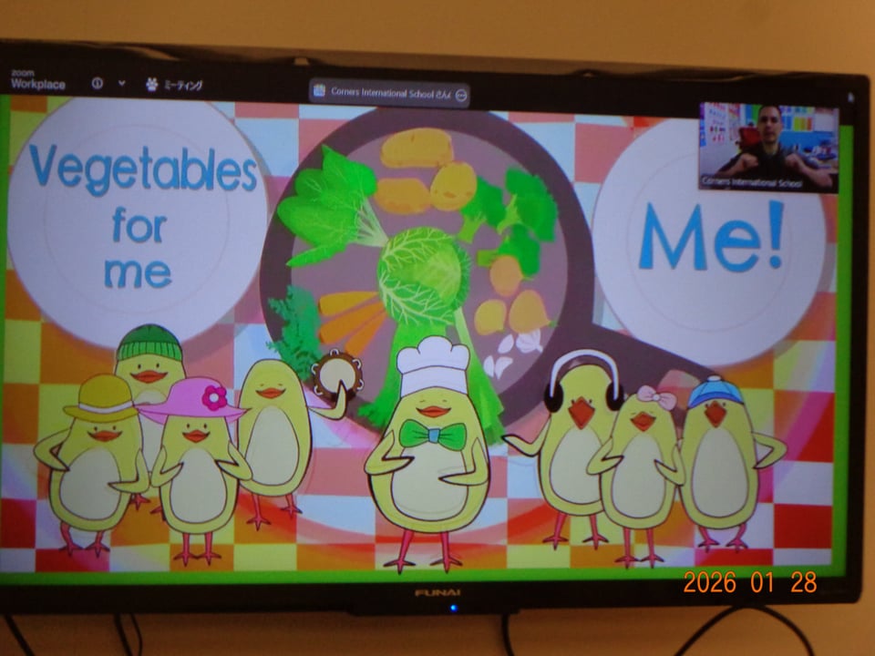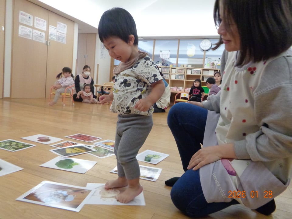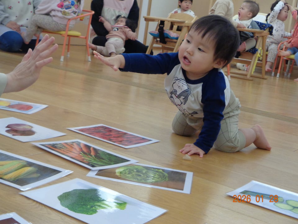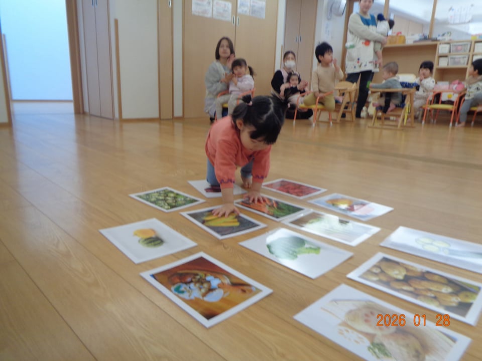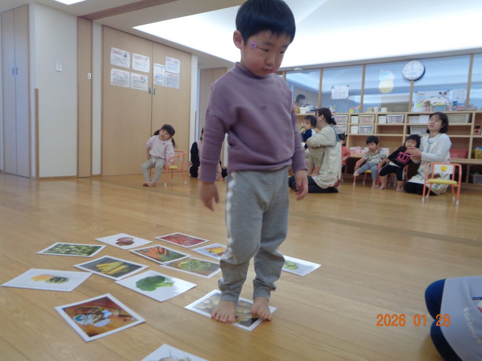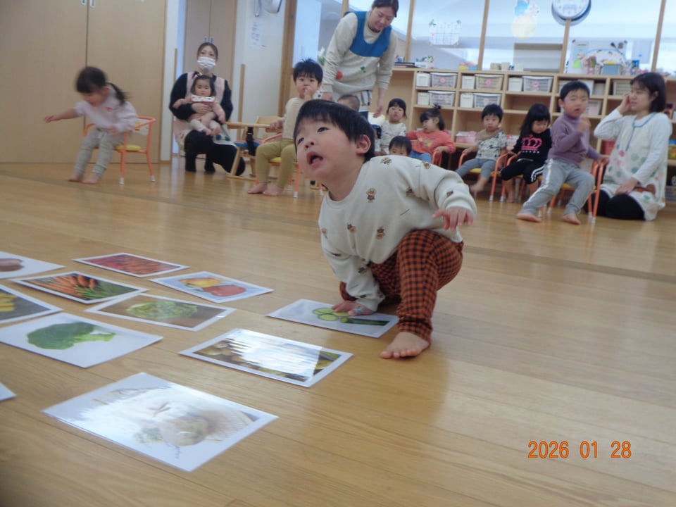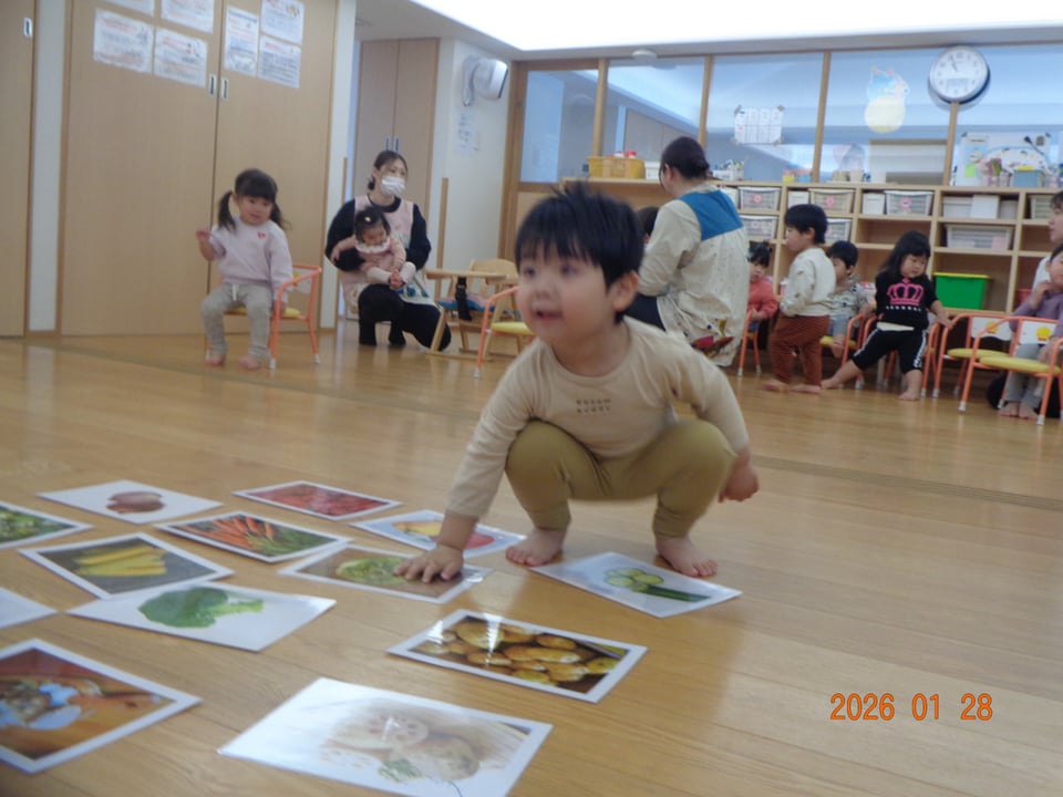絵本やお歌を通して野菜に親しみ、遊びを取り入れたレッスンに