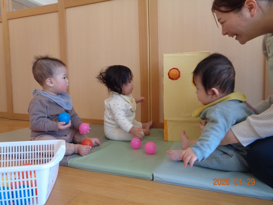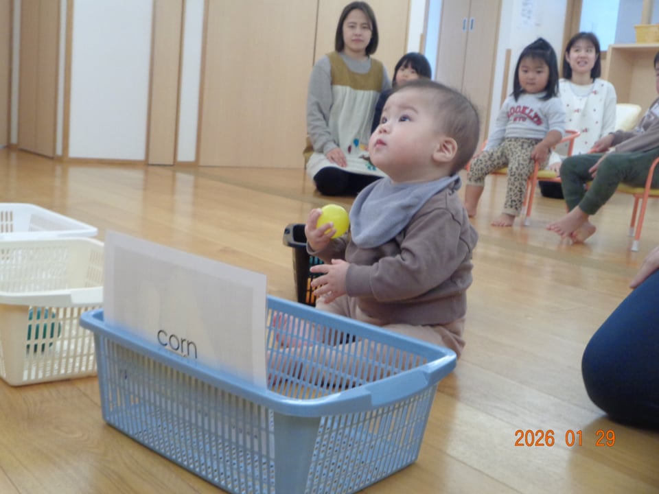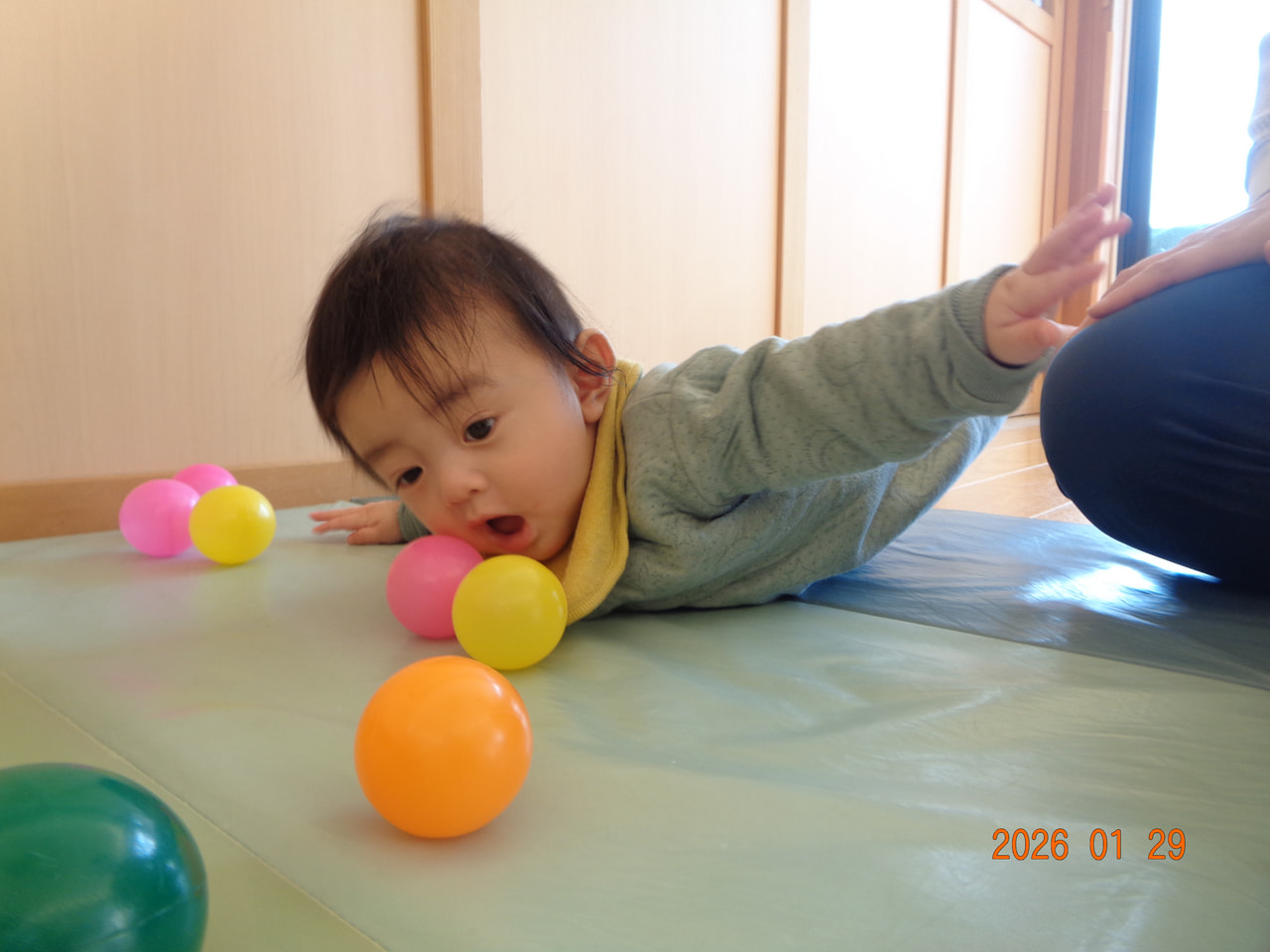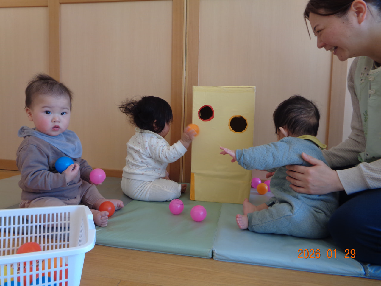 オレンジ・黄色・緑のボールを野菜に見立て、