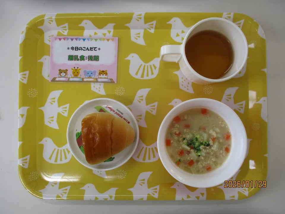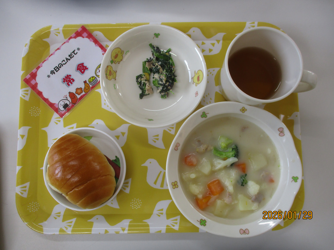 ・パン ・ブロカリシチュー ・鉄分たっぷりほうれん草サラダ
