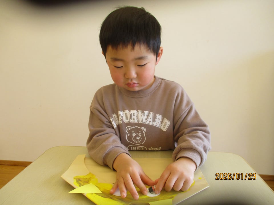 次に、お花紙とのりを使って髪の毛を作ります❕