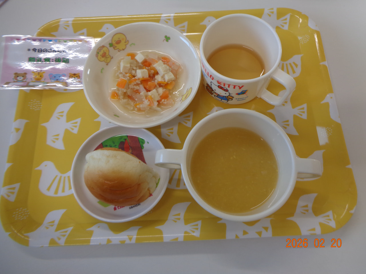 ・パン ・鶏肉と野菜の煮物 ・コーンスープ