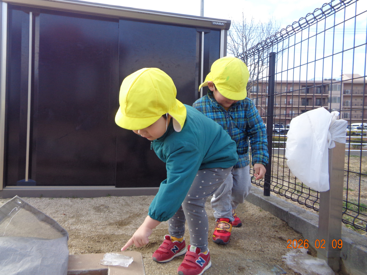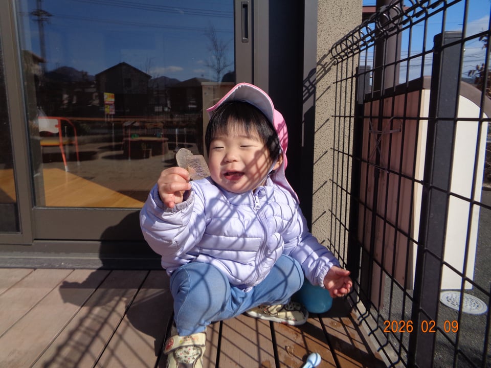 園庭では、冬ならではの光景を発見👀✨