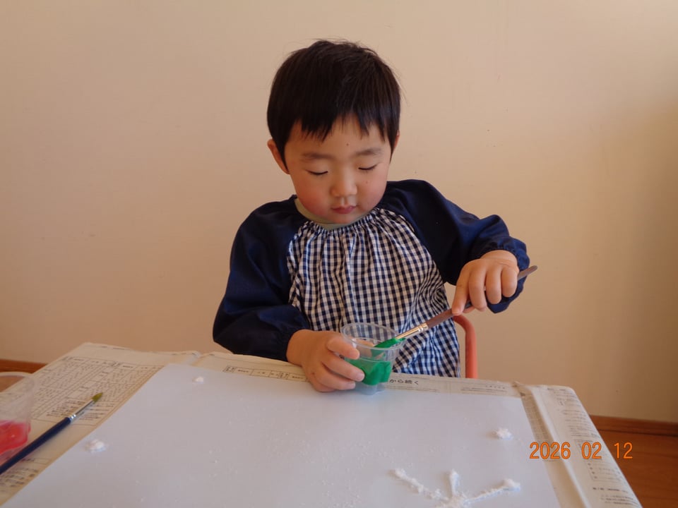 塩で描いた模様に好きな色を使って色ぬり🎨