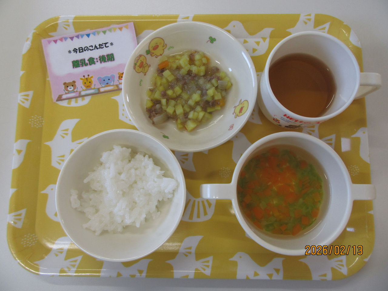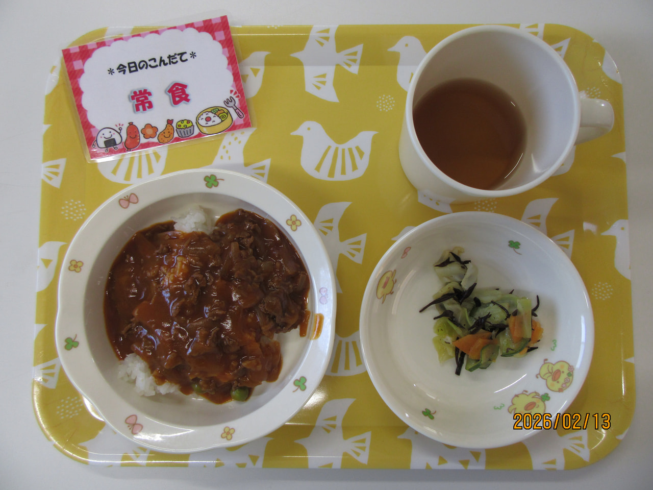 ・軟飯 ・牛肉と野菜の煮物 ・野菜スープ