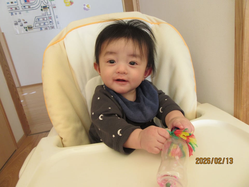 保育士手作りのマラカスを鳴らしてご機嫌です🥰