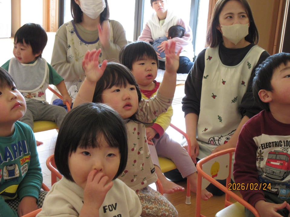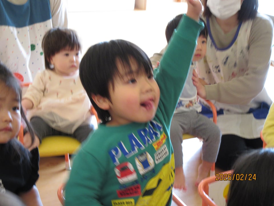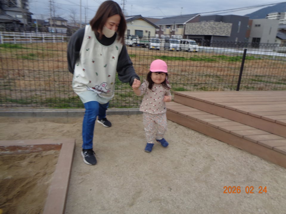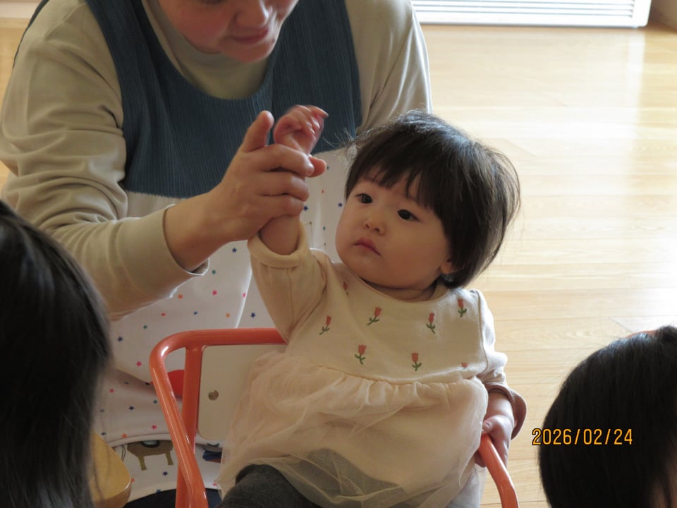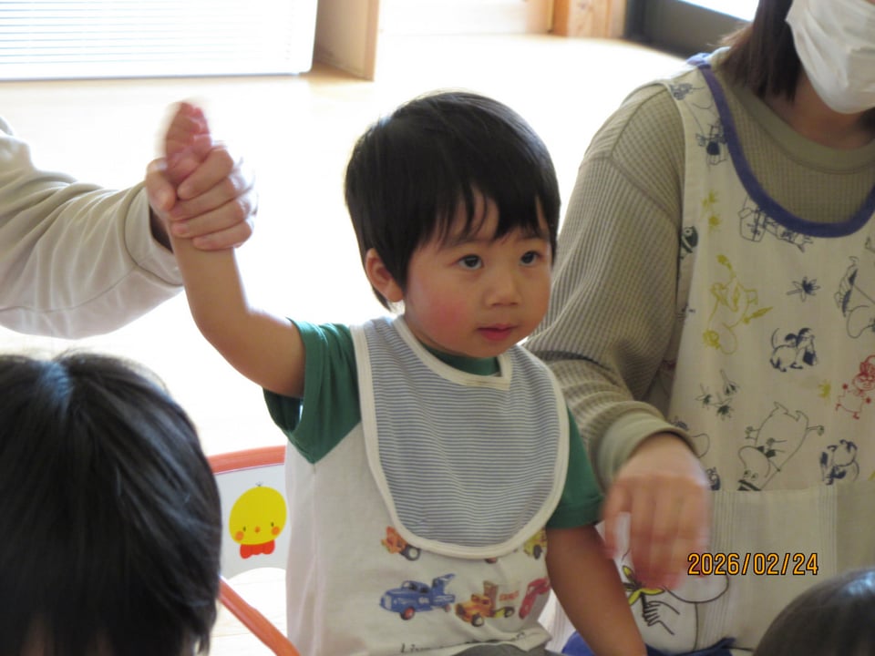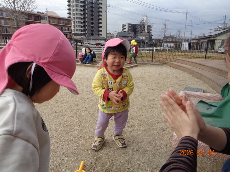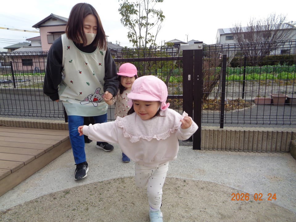 「よーいどんしよ❓」と誘って一緒に体を動かして
