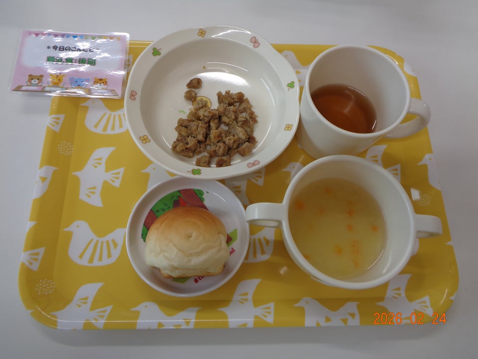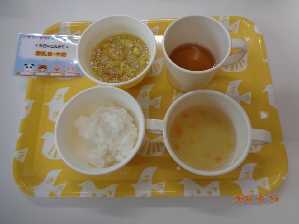 ・全がゆ ・野菜の卵とじ ・キャベツのスープ