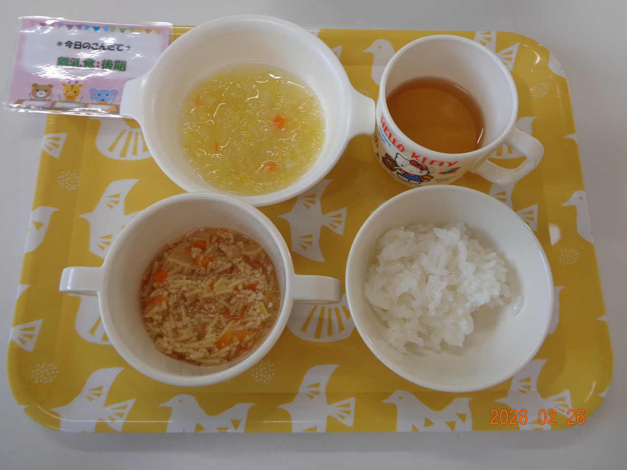 ・軟飯 ・ミネストローネスープ ・野菜の和え物