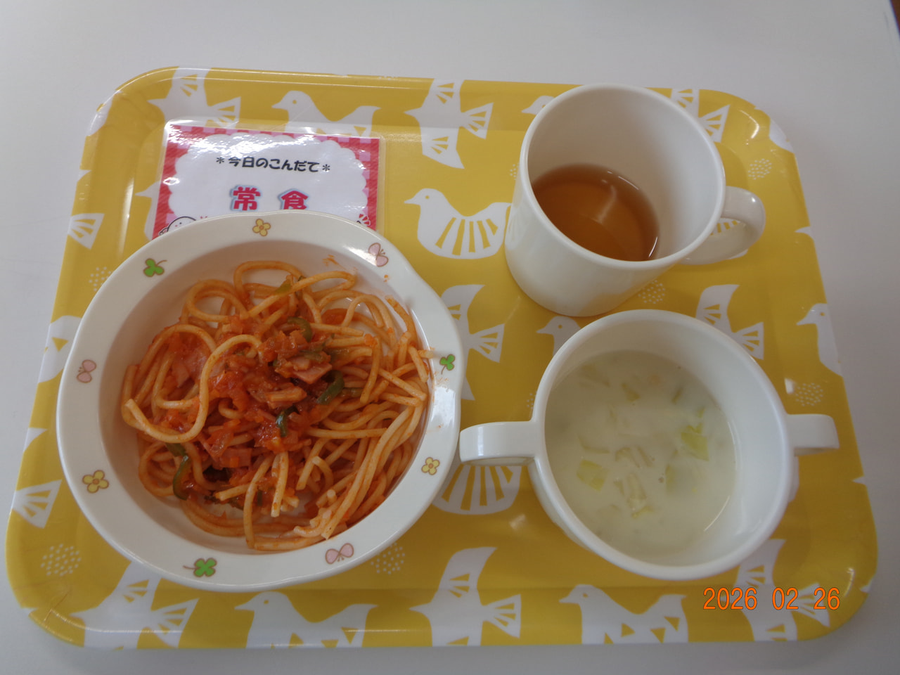 ・イタリアンスパゲッティ ・コーンとキャベツの豆乳スープ