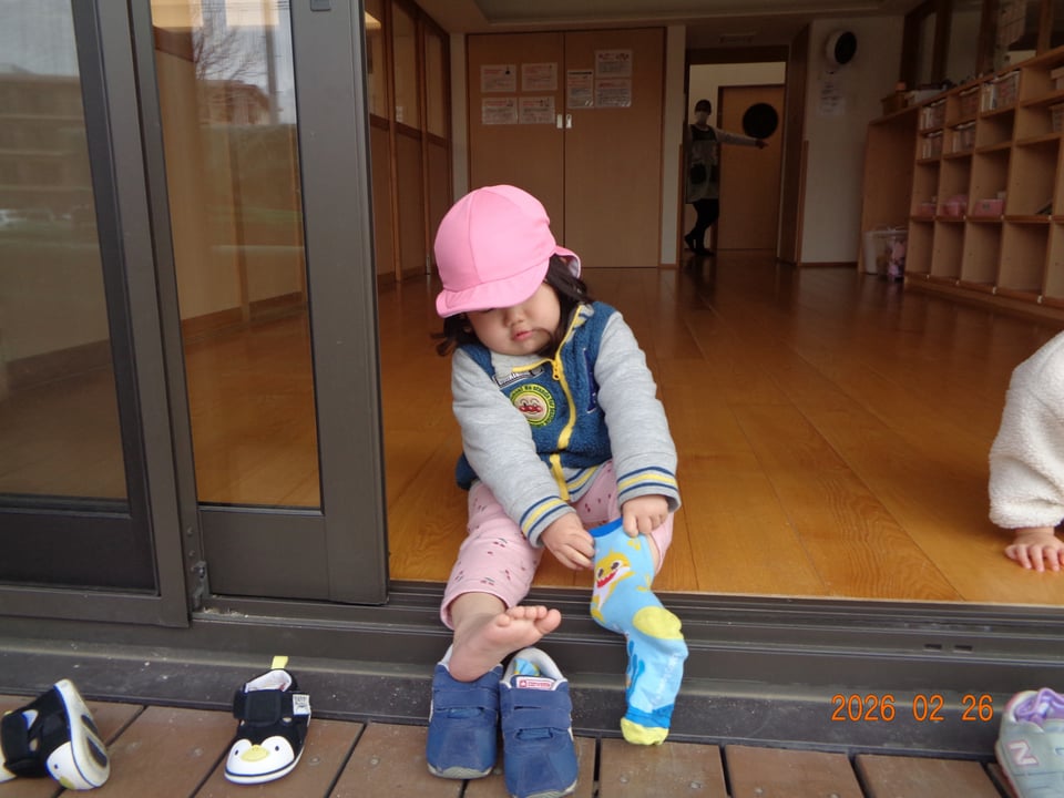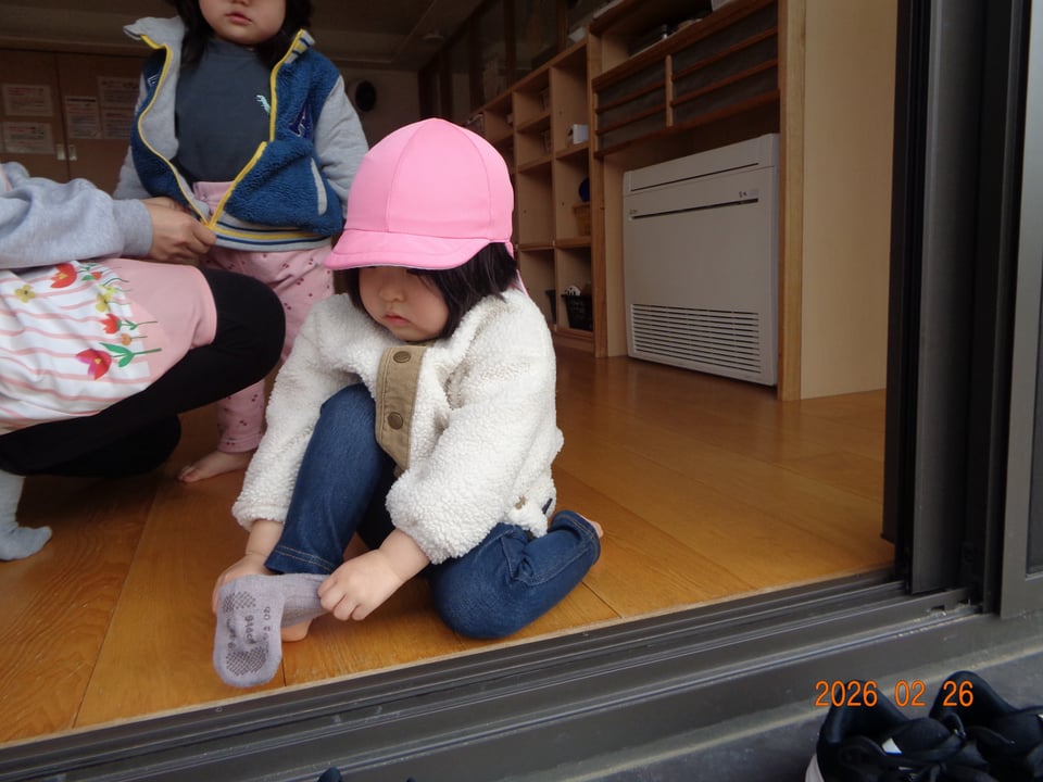 帽子を被って、ジャンバーを着て、靴下と靴を履いて・・・