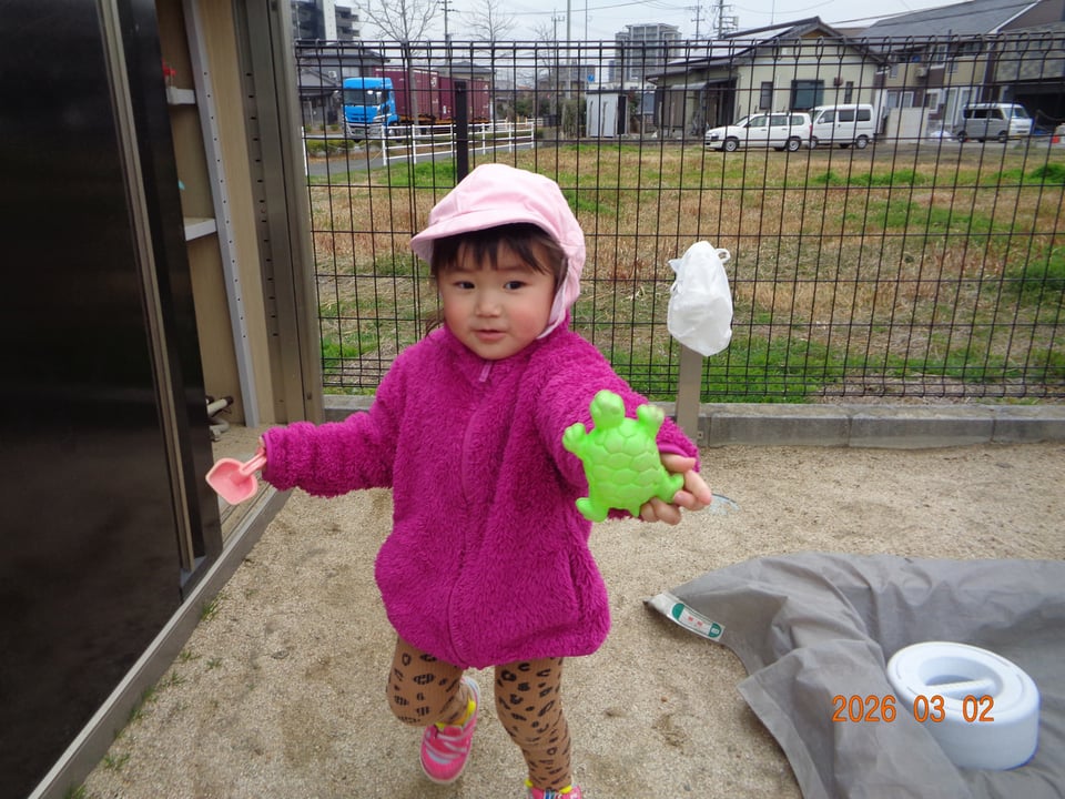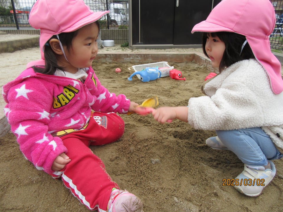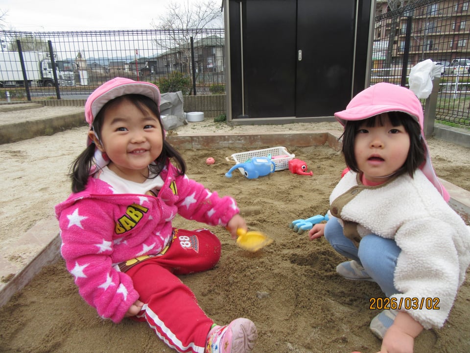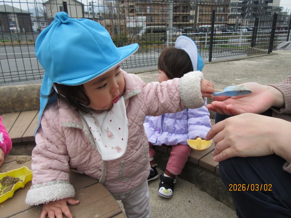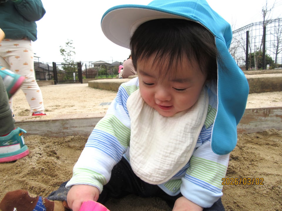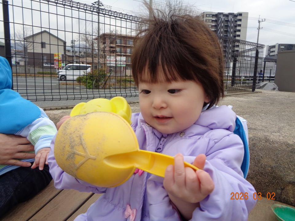 砂遊びデビューをしたにじぐみさん(^^)