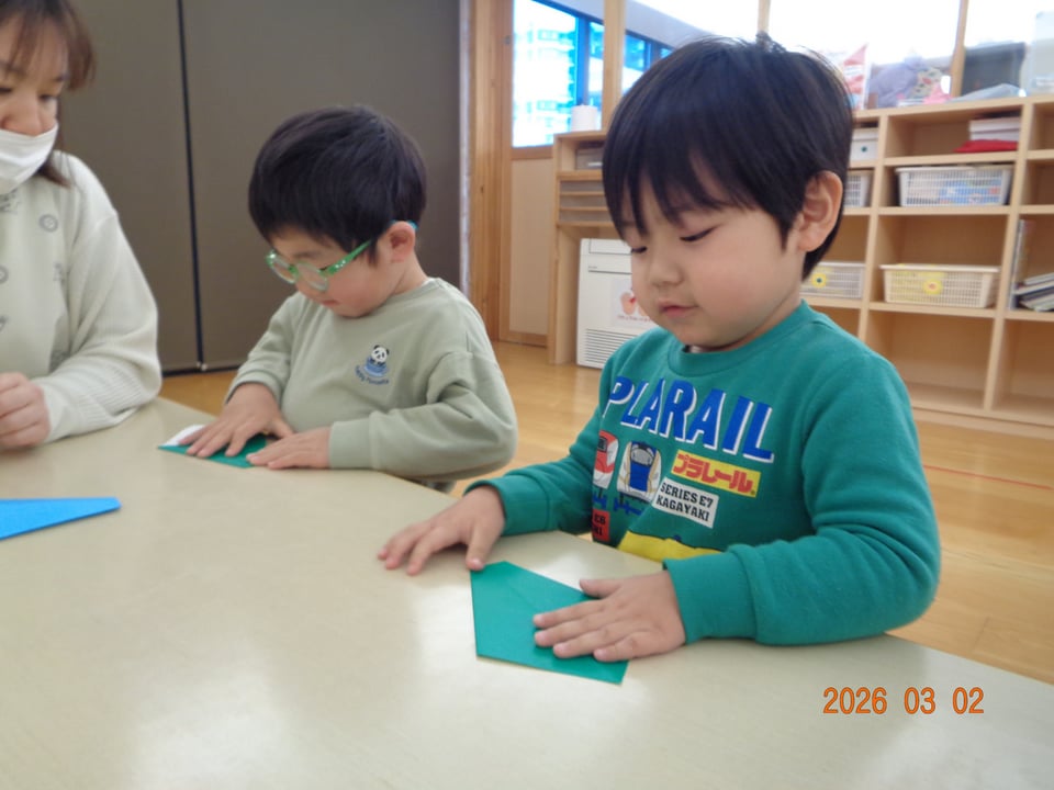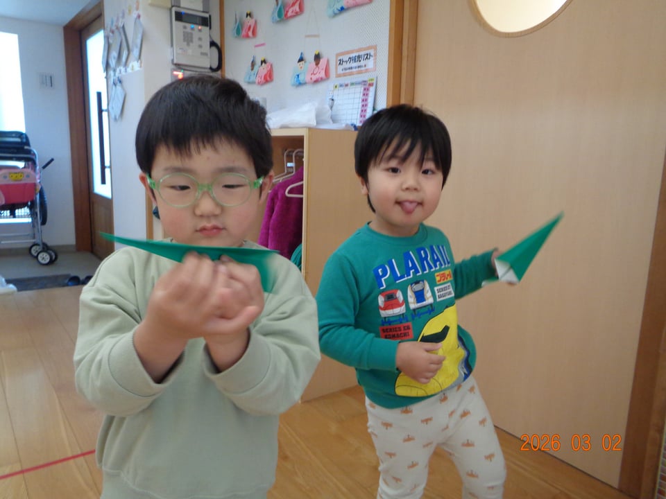 自分で作った紙飛行機が飛んで嬉しそうでしたよ(*^^*)