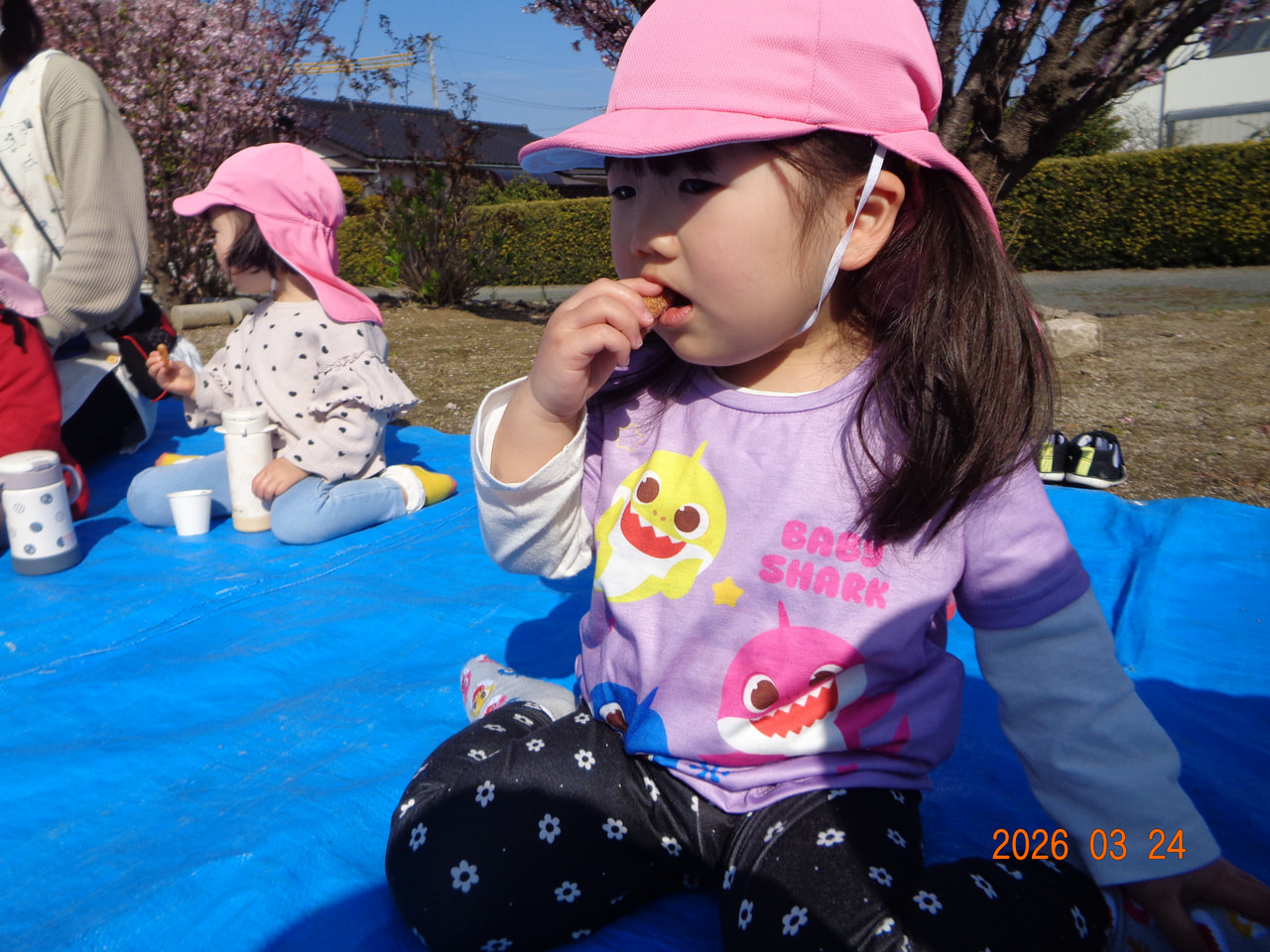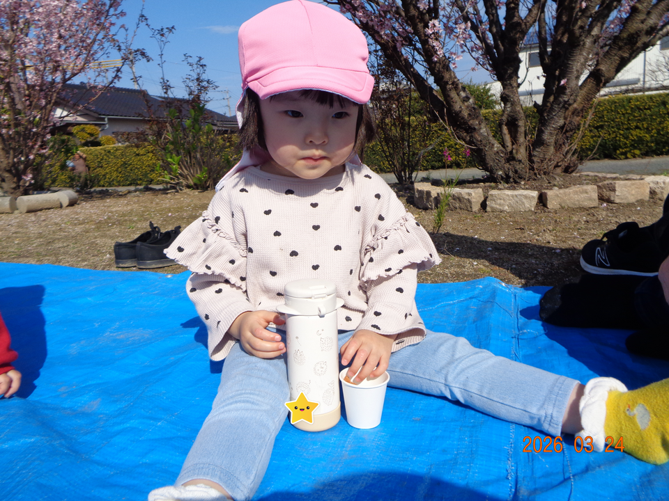 今日は、お花見をしながらおやつをいただきました😋🥛