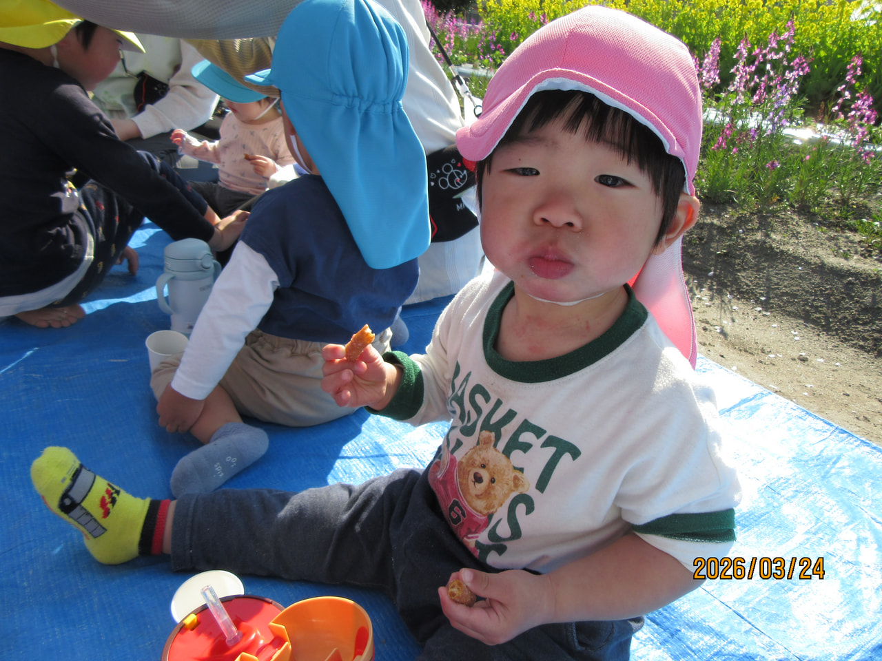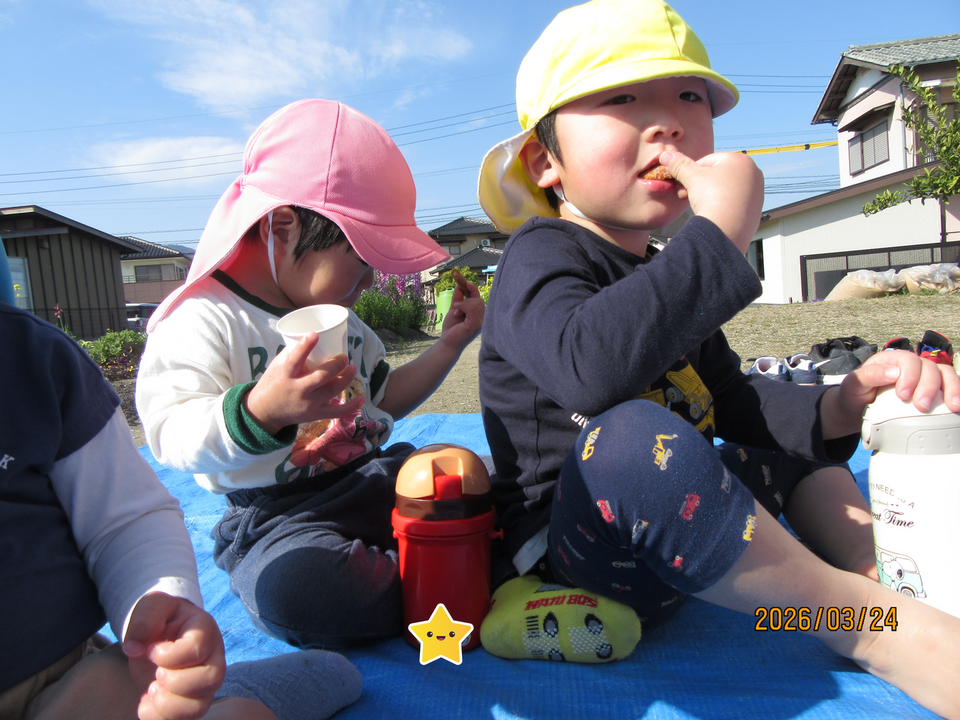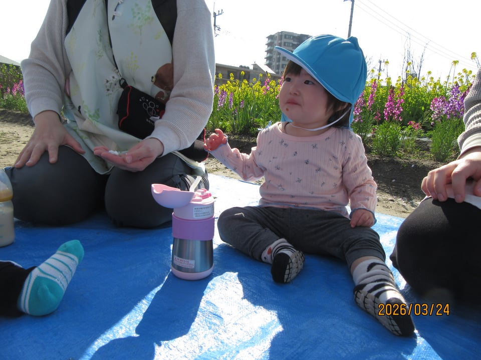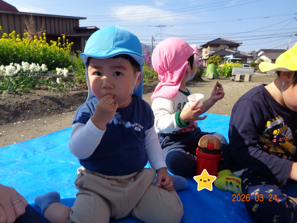 桜や菜の花を見ながら食べるおやつは最高~\(^o^)/