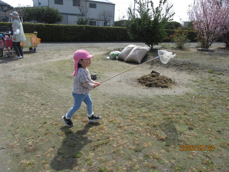 虫取り網で一生懸命に捕まえようとしていました♪(´▽`)