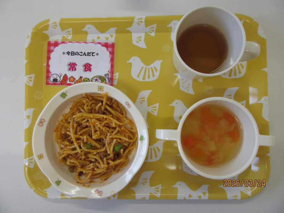 ・ミートソーススパゲッティ ・キャベツとにんじんのスープ
