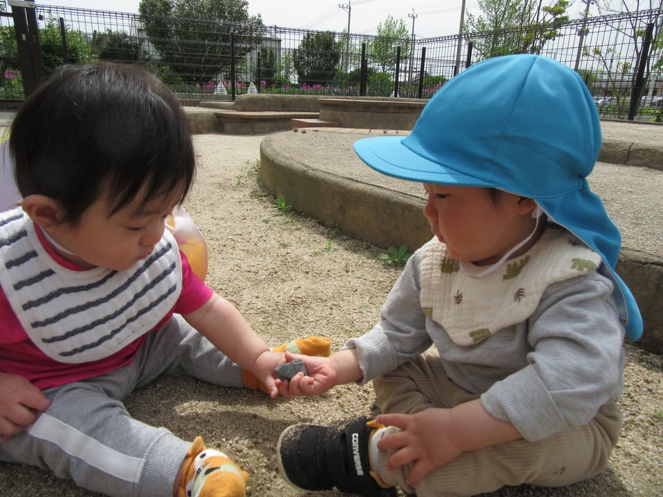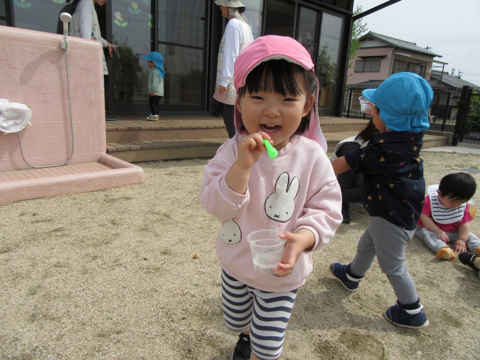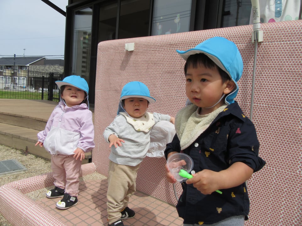 園庭でしゃぼん玉や探索活動をしました🍀