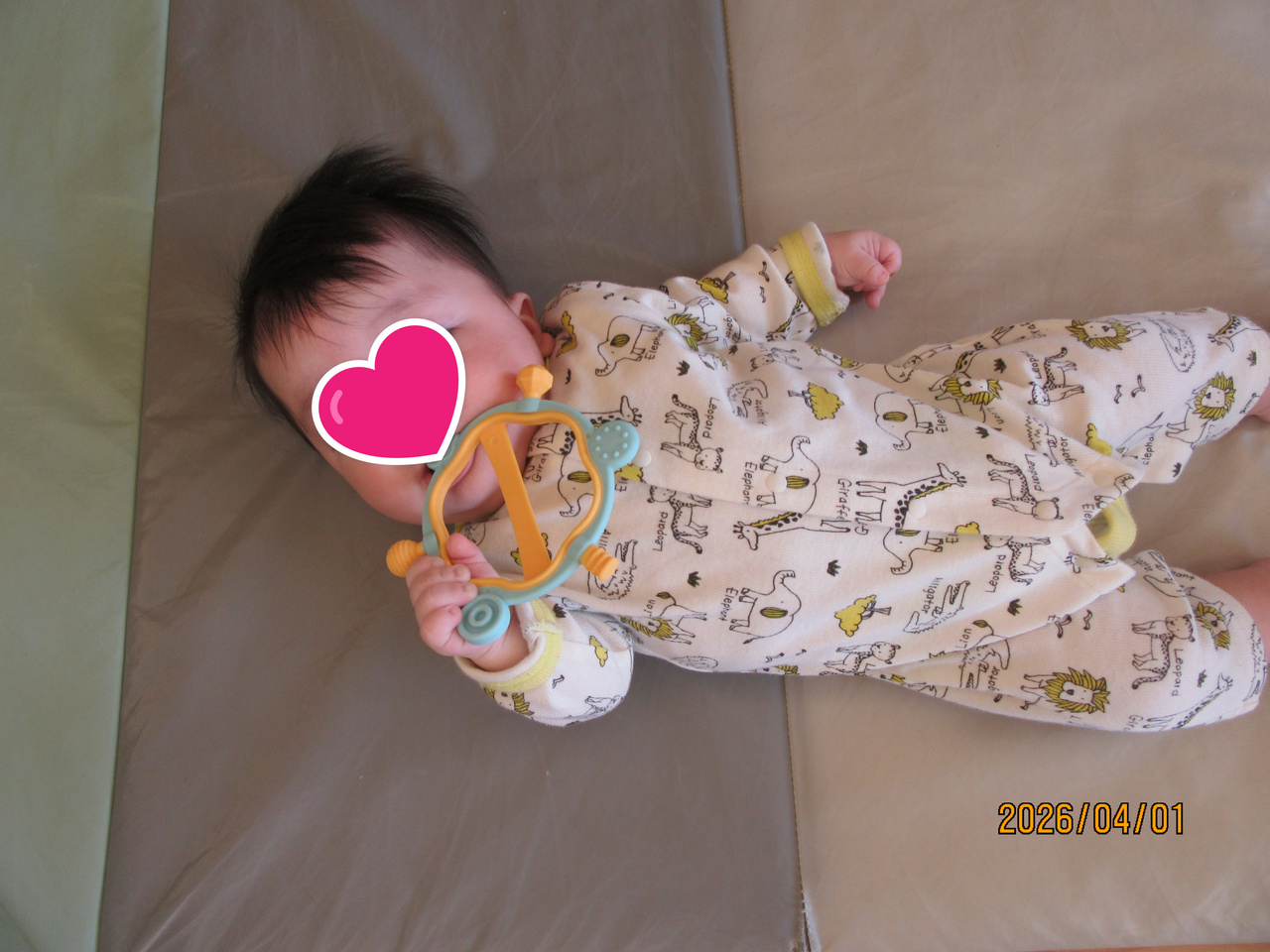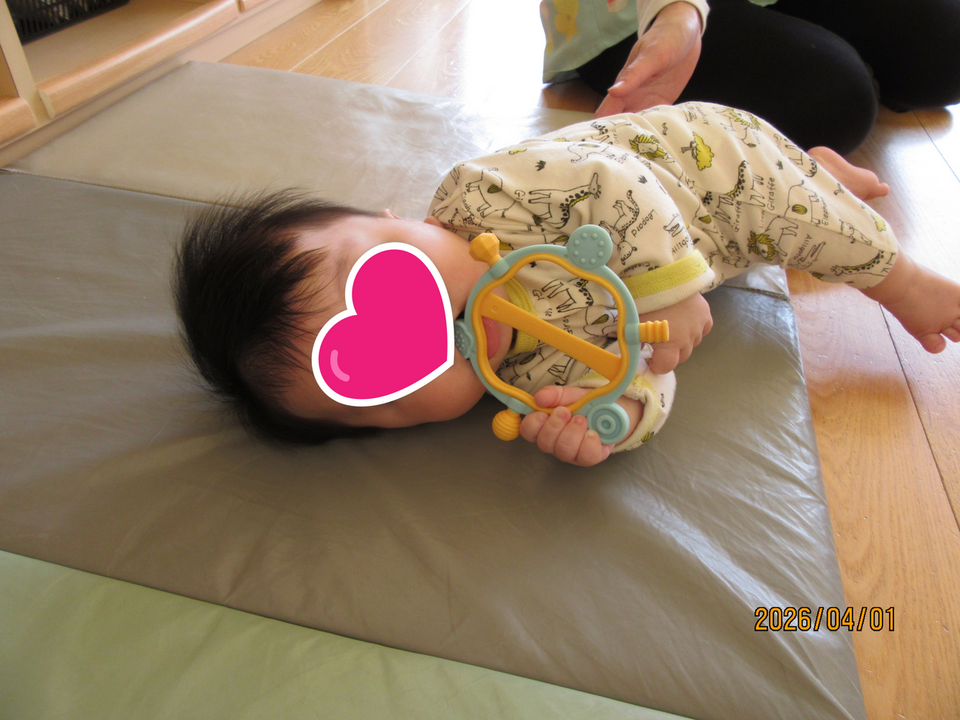 マットの上で、玩具をしっかりと握りご機嫌💛