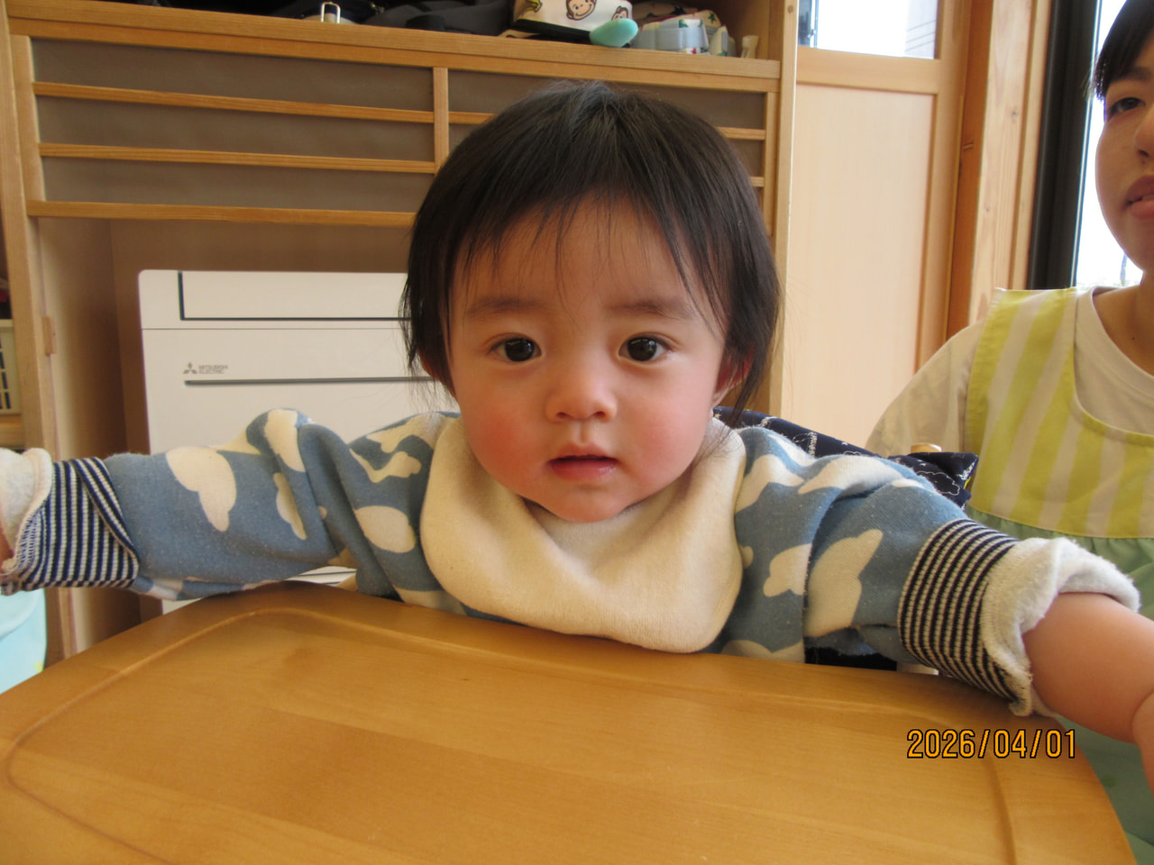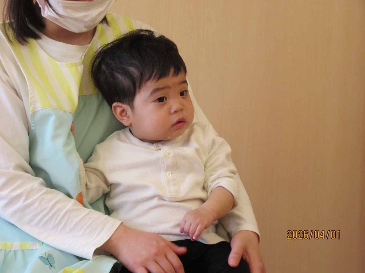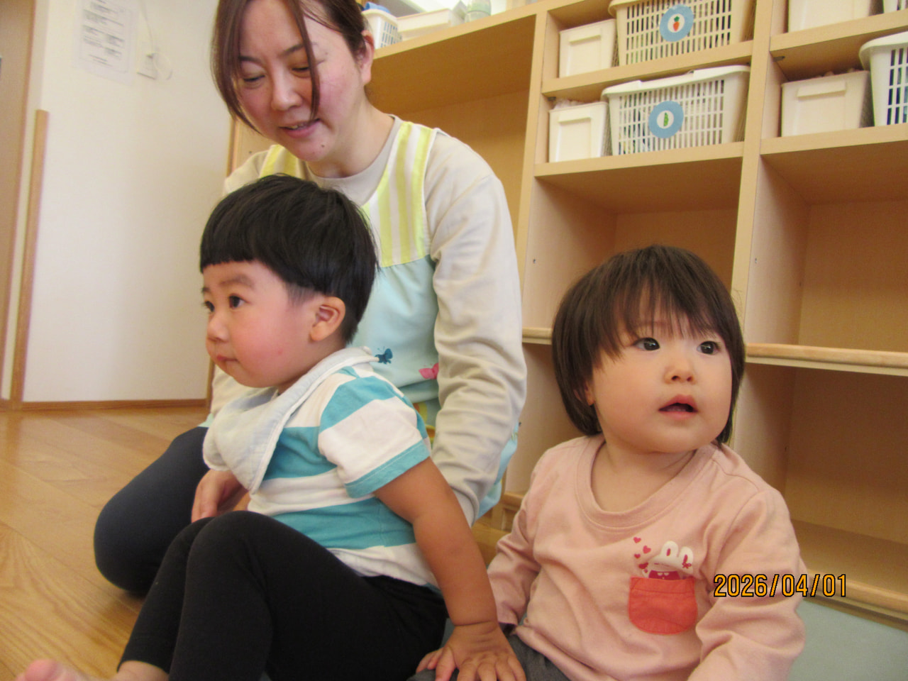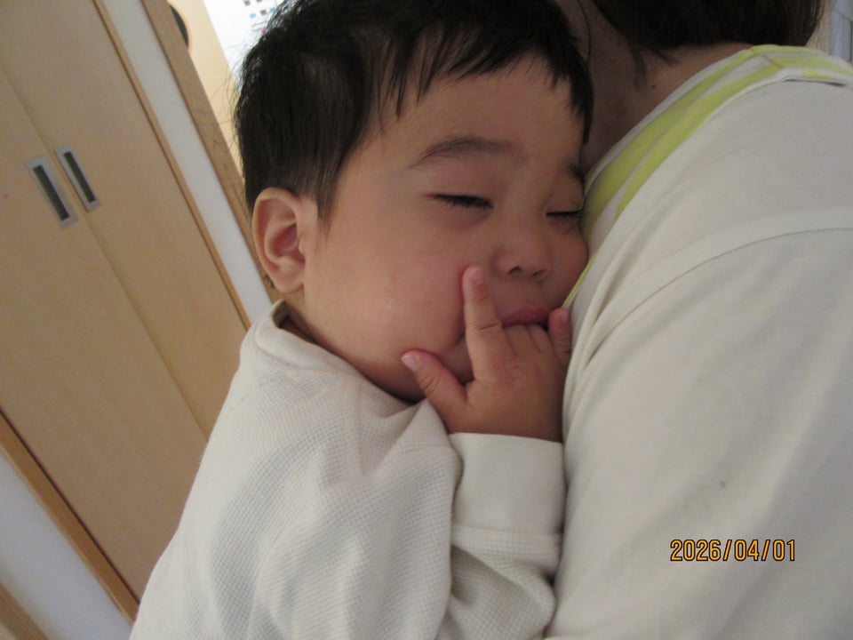 午前睡に入るお友だちや緊張から保育士から離れず、