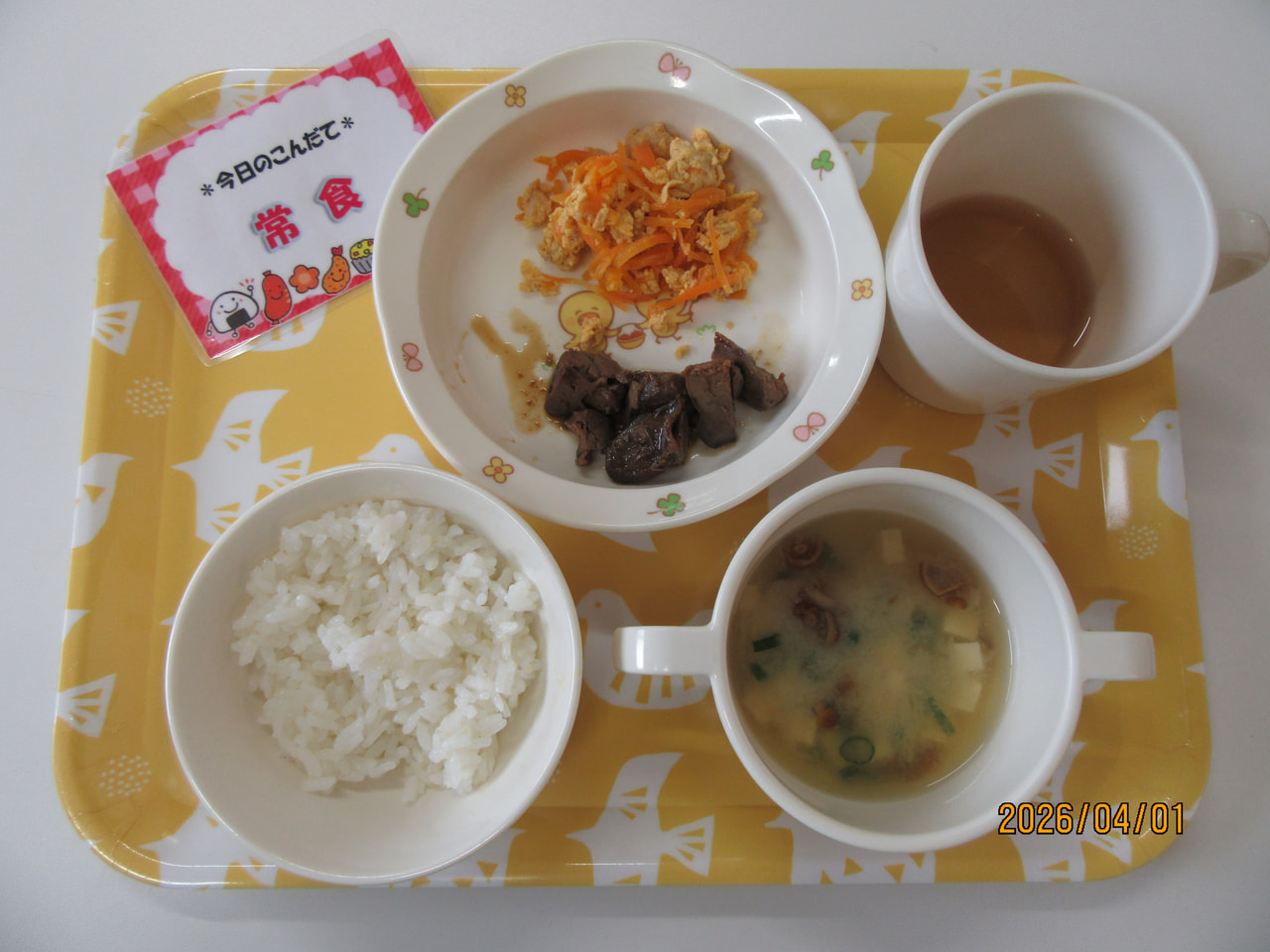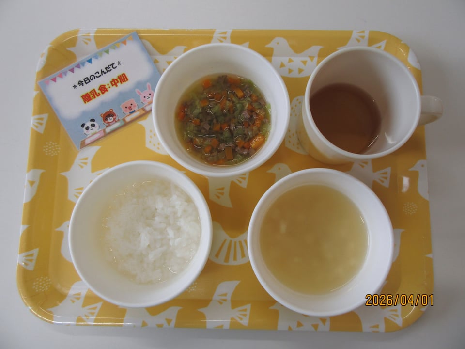 ・5倍がゆ ・レバーと野菜の煮つけ ・みそ汁