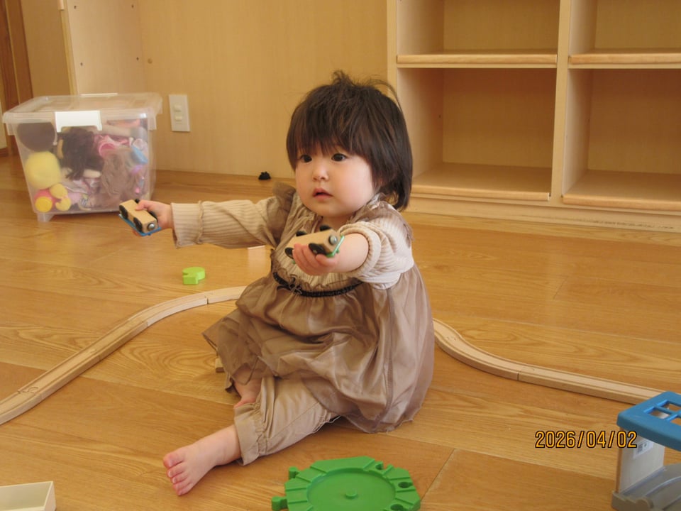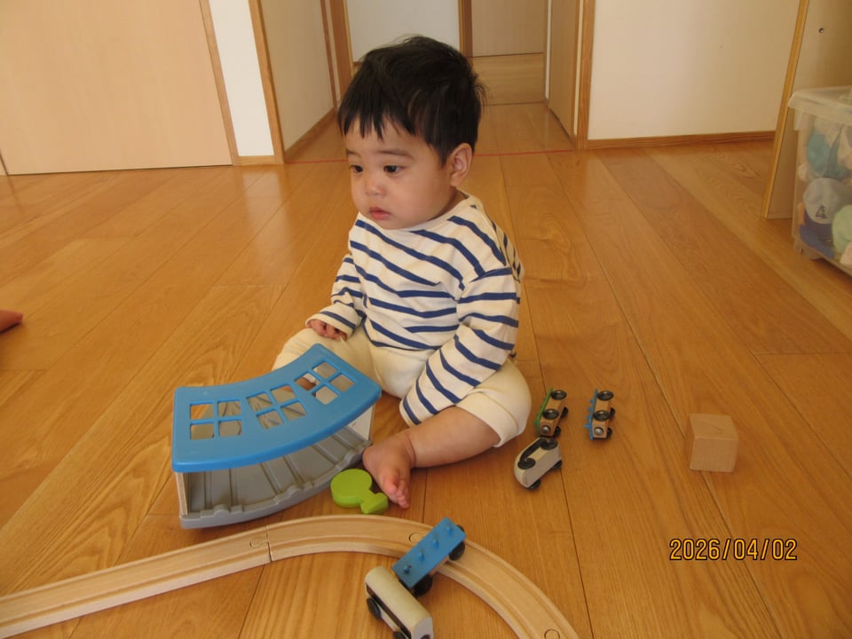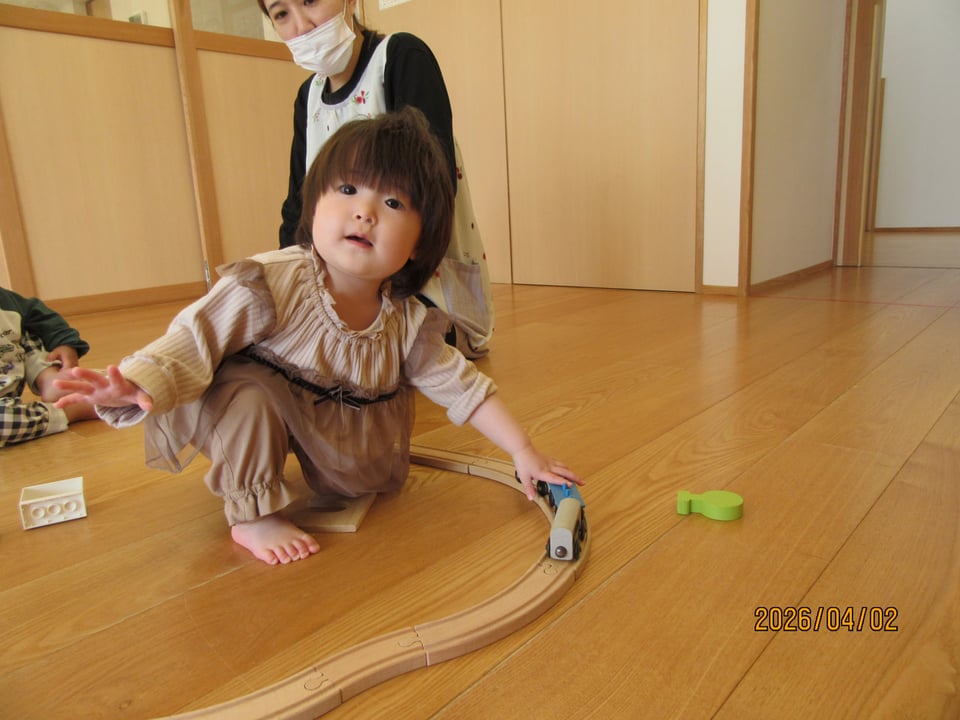 ほし🌟&そらぐみは、線路をつなげて電車🚃を走らせて遊ぶお友だちや