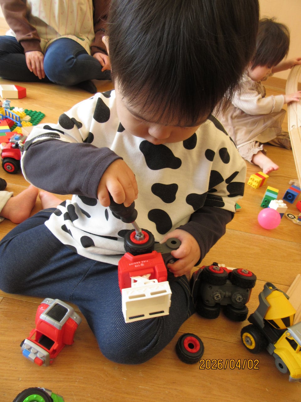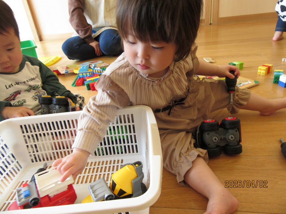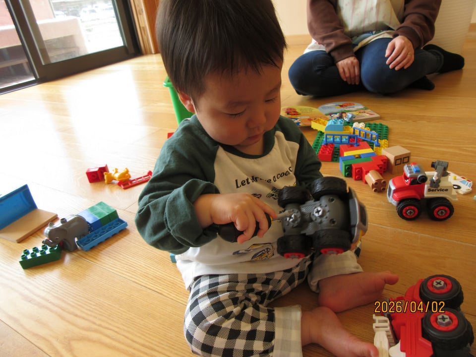 ドライバーを持って車のネジを回すおもちゃに夢中な姿も( *´艸`)