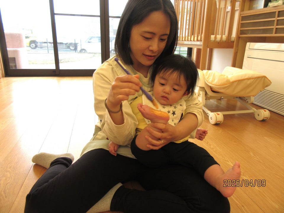 ♬ はなちゃん りんごを 食べたいね~ ♬でこちゃんむしゃむしゃむしゃ