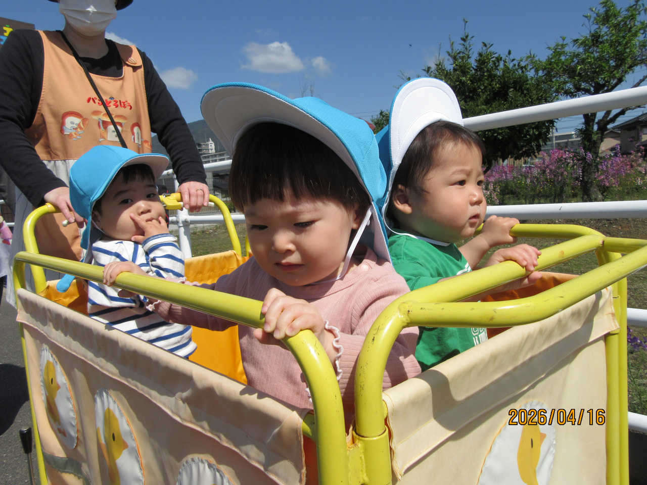 にじぐみさんは、ベビーカーに乗ってお散歩💛