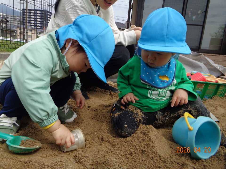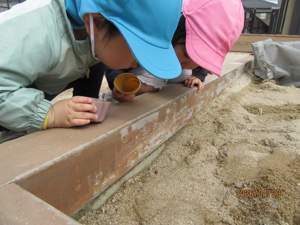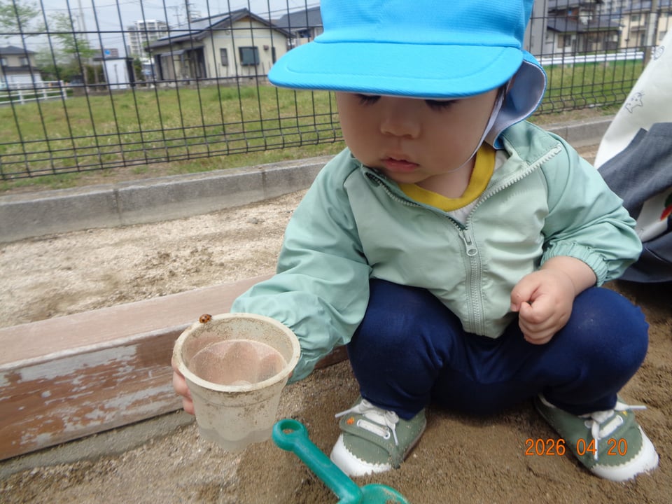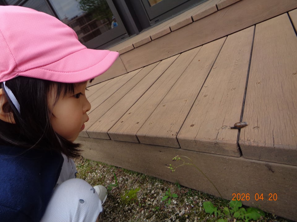 園庭で遊んでいるとてんとう虫やかたつむり、ダンゴムシも遊びにきました🐞🐌