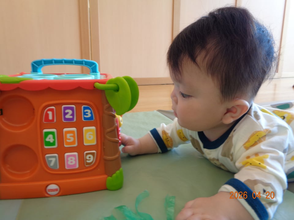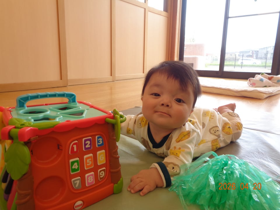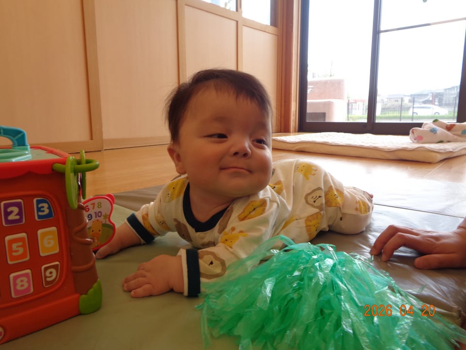 喃語や寝返りも上手になって色々な物に興味津々の様子です🥰