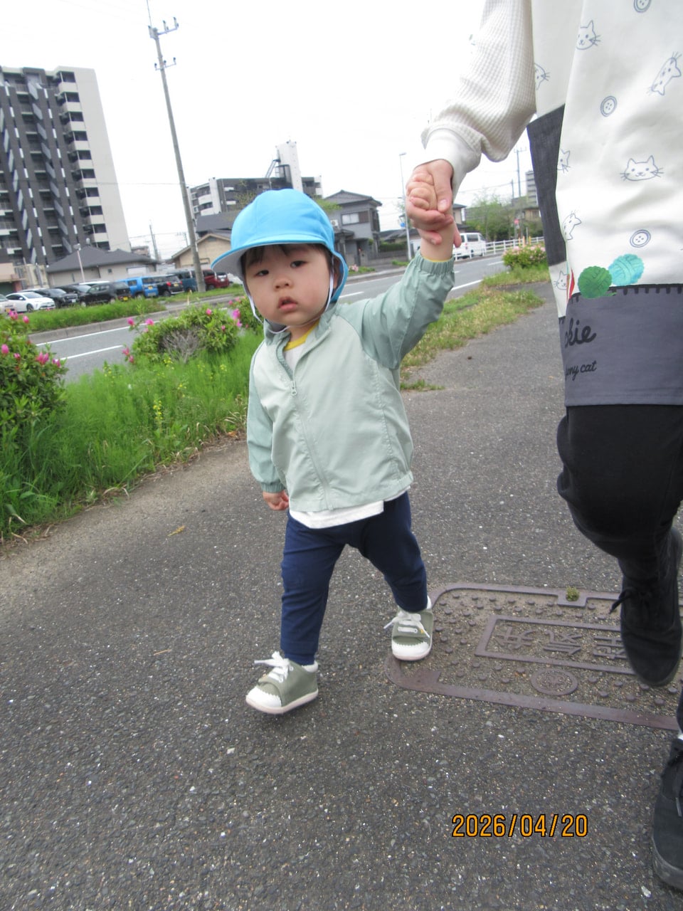 引き返して、雨が降ってもすぐに戻れるように園庭で遊ぼう!!